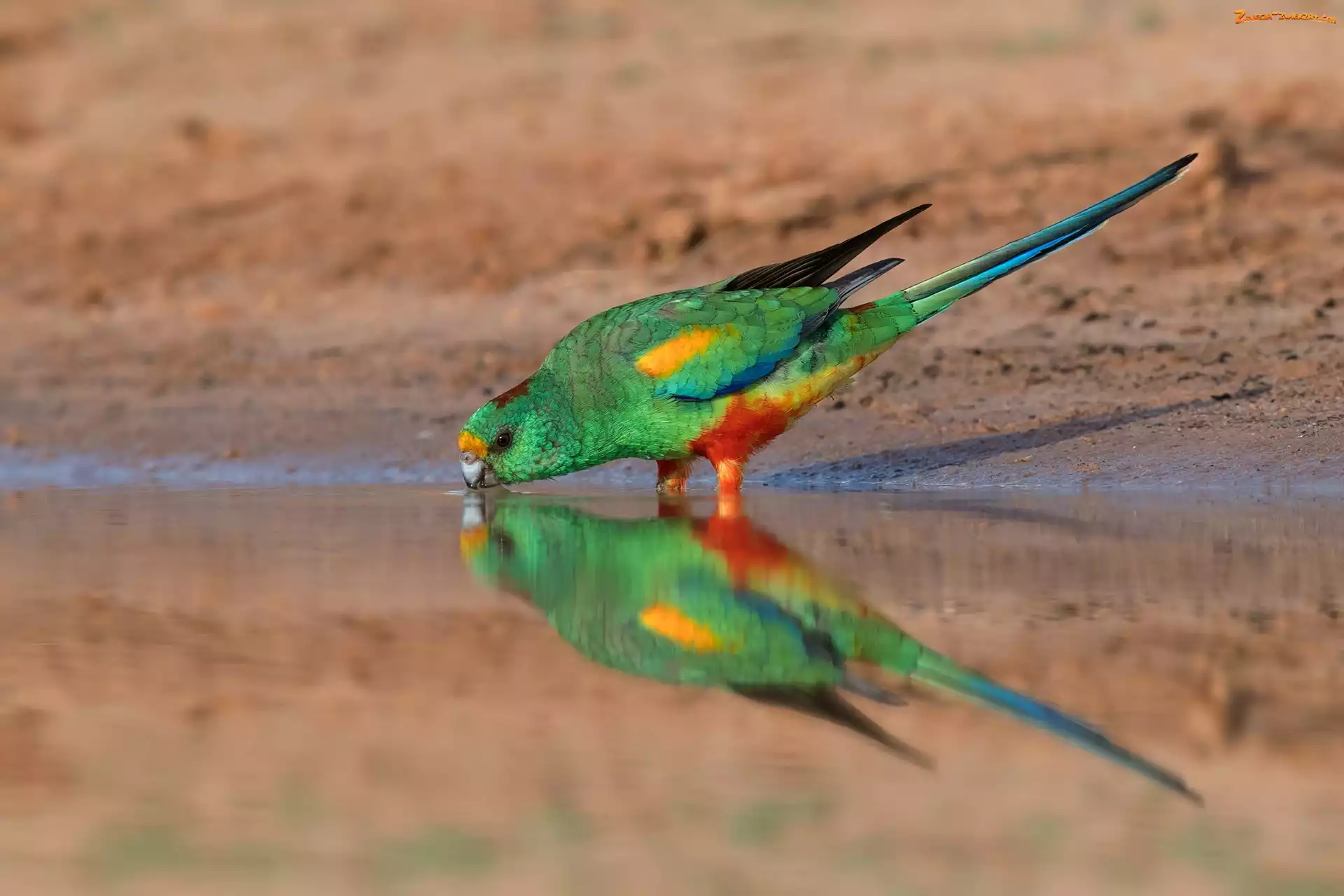 Odbicie, Woda, Papuga, Ptak, Świergotka wielobarwna
