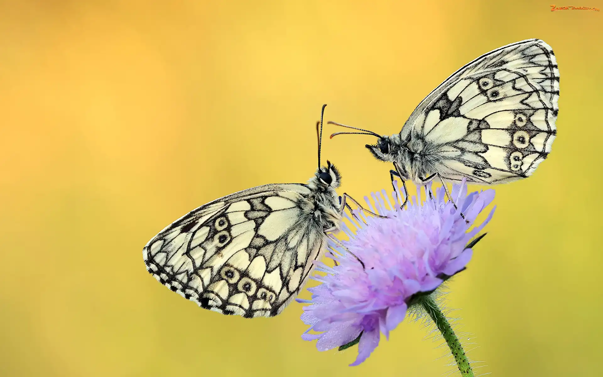 Zdjęcie: Łodyga, Kwiat, Motyle, Dwa, Polowiec szachownica