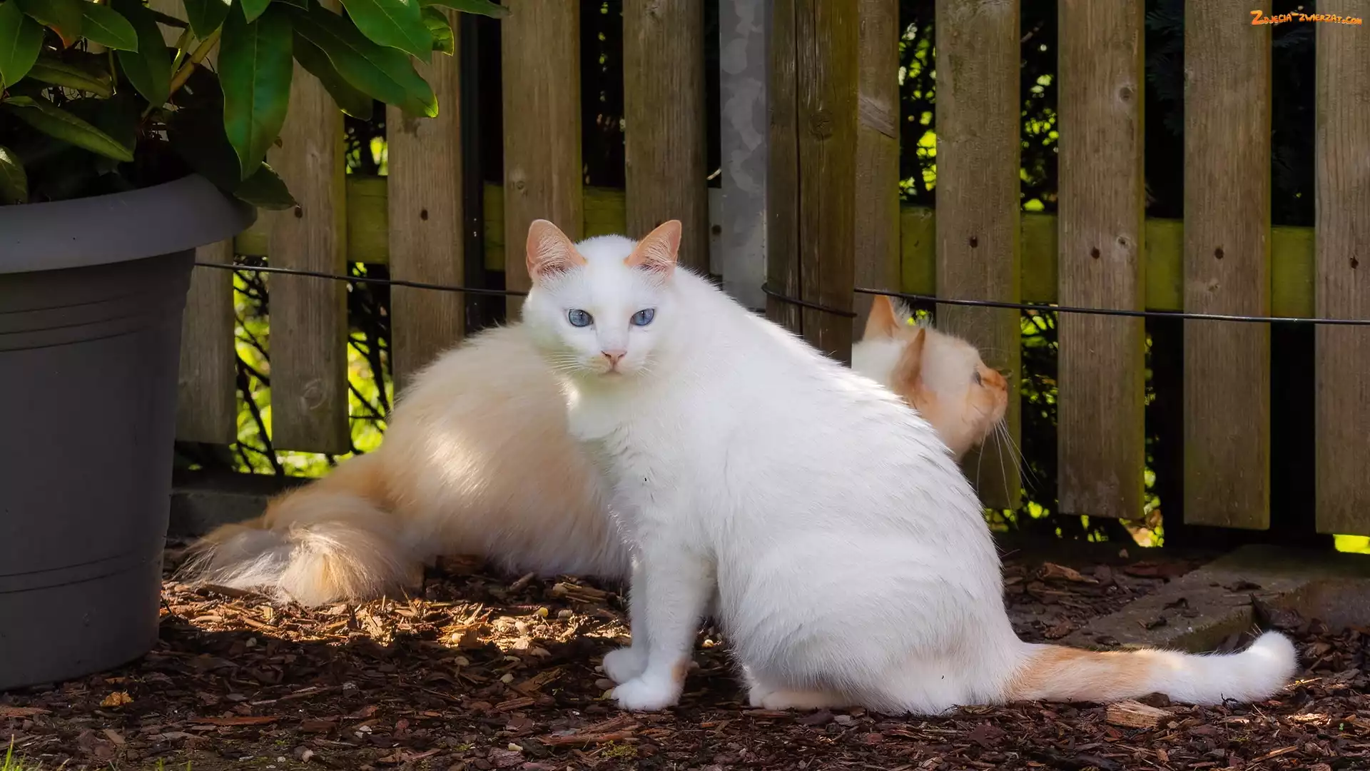 Zdjęcie: Ogród, Dwa, Płot, Kwiat, Koty, Doniczka