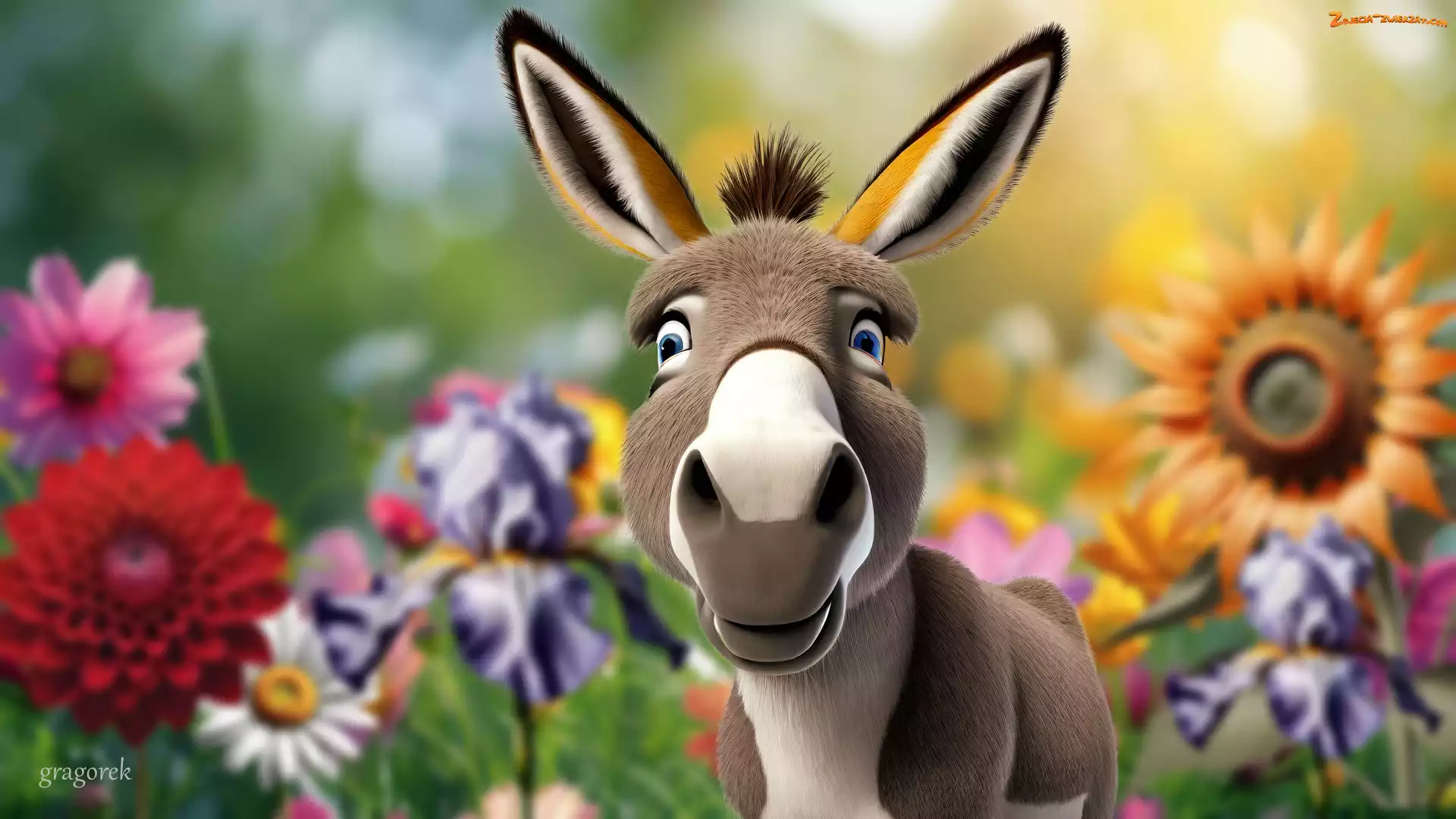 Zdjęcie: Osioł, Kwiaty, Grafika, Ogród
