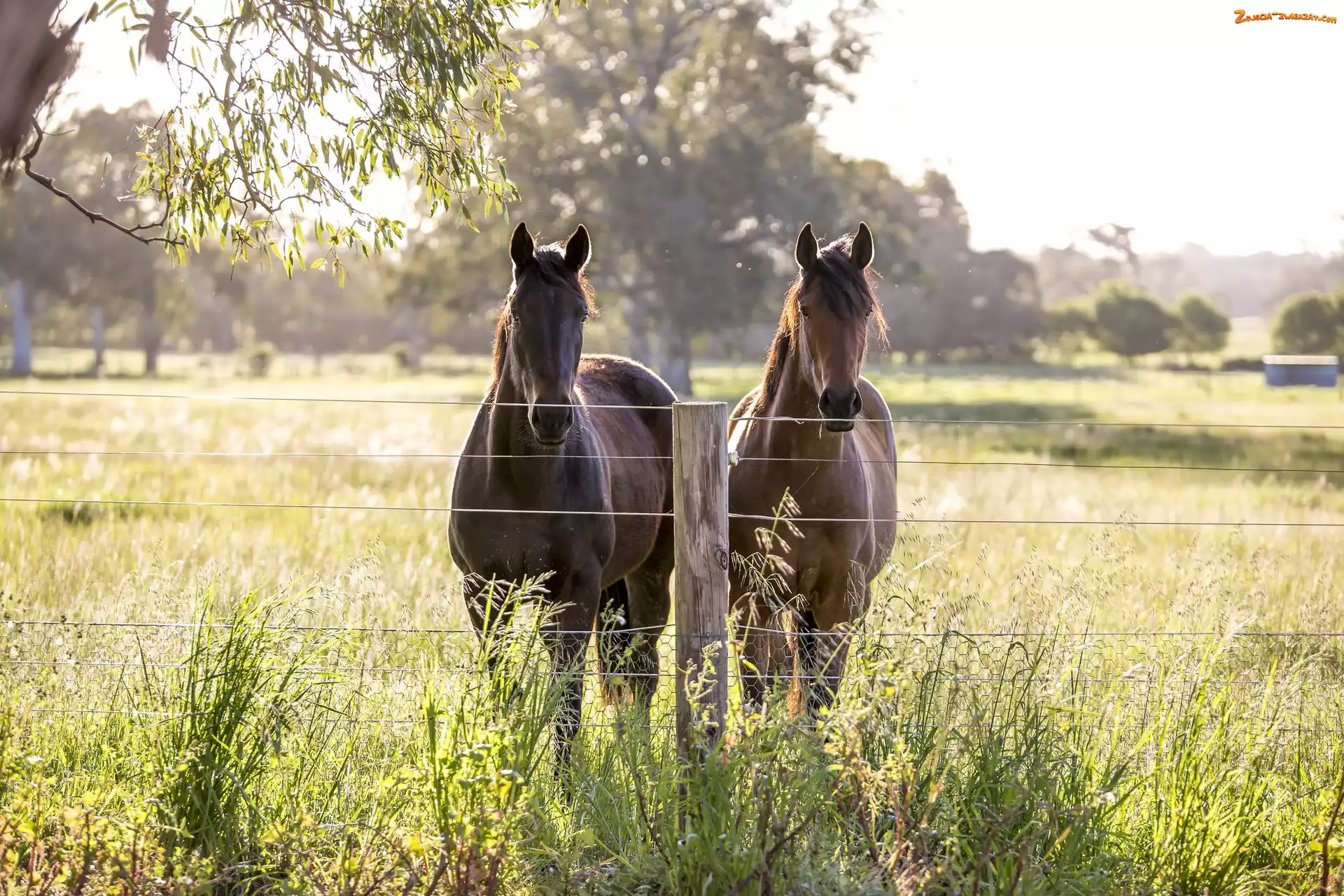 Ogrodzenie, Trawa, Konie, Dwa, Pastwisko