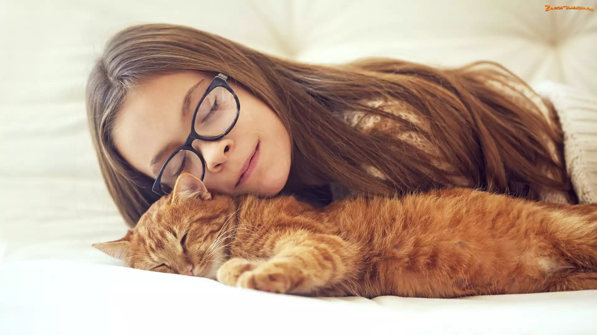 Zdjęcie: Okulary, Kot, Dziewczyna, Rudy