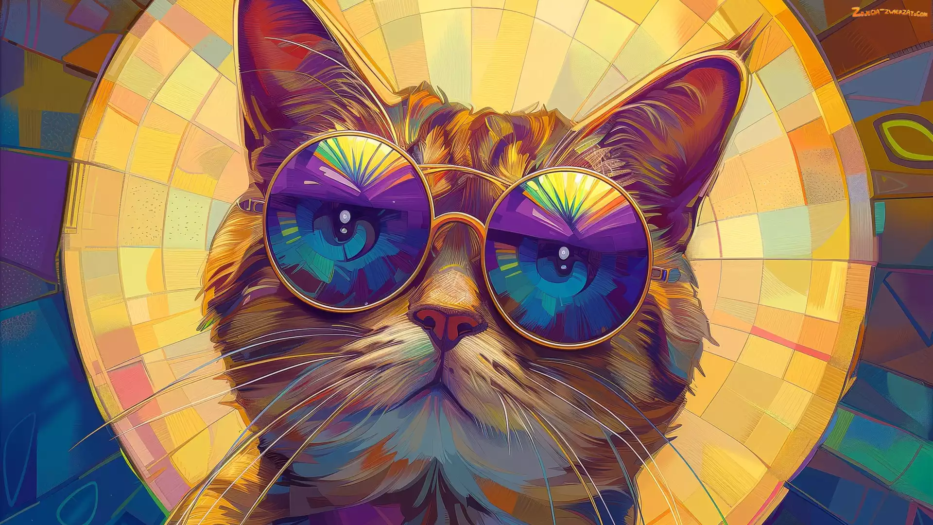 Zdjęcie: Żółte, Okulary, Koło, Grafika, Kot