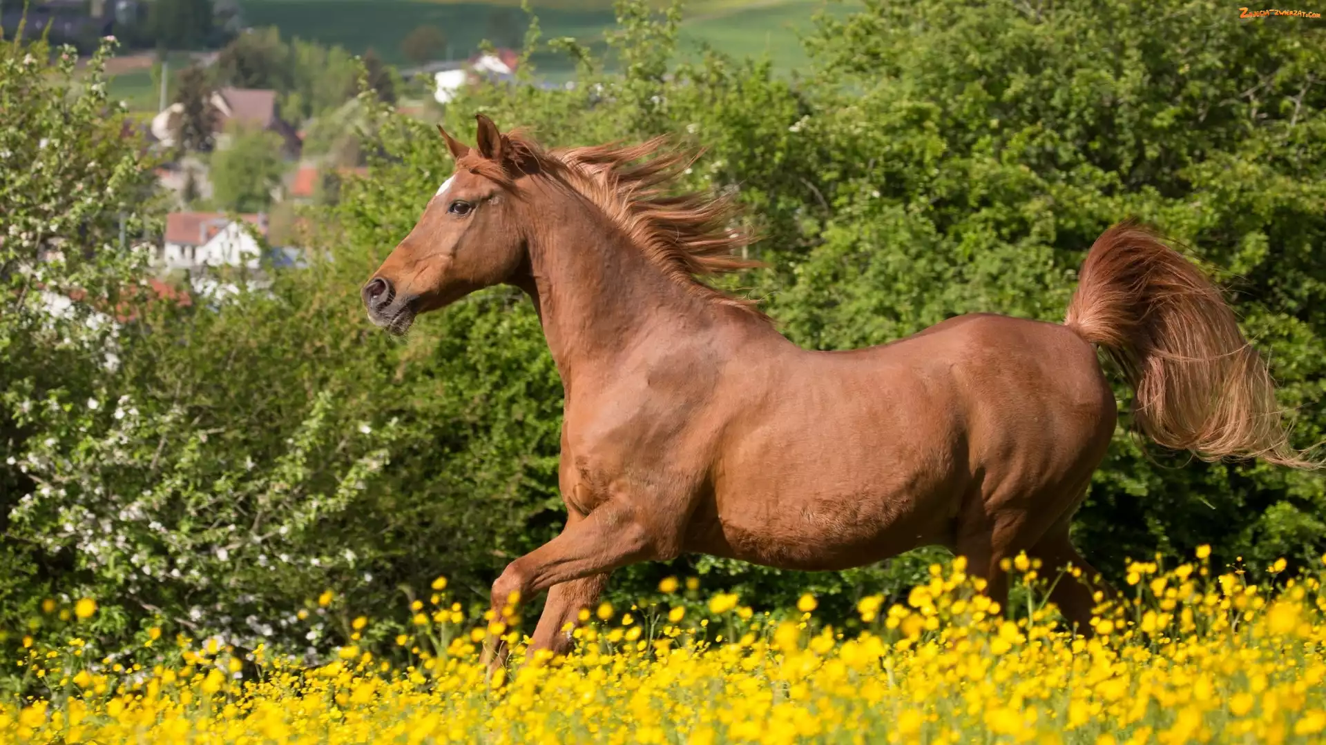 Zdjęcie: Żółte, Koń, Tło, Rozmyte, Łąka, Kwiaty