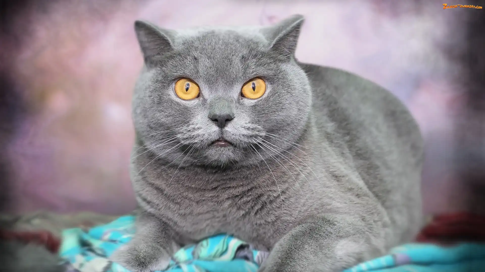 Zdjęcie: Oczy, Żółte, Leżący, Szary, Kot brytyjski krótkowłosy