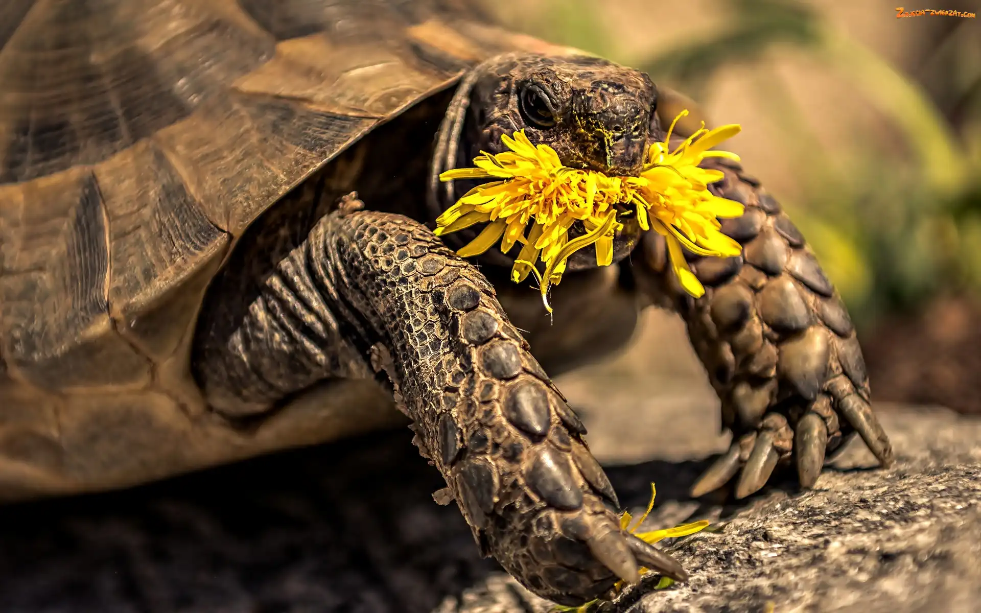 Żółty, Mniszek, Żółw, Kwiatek