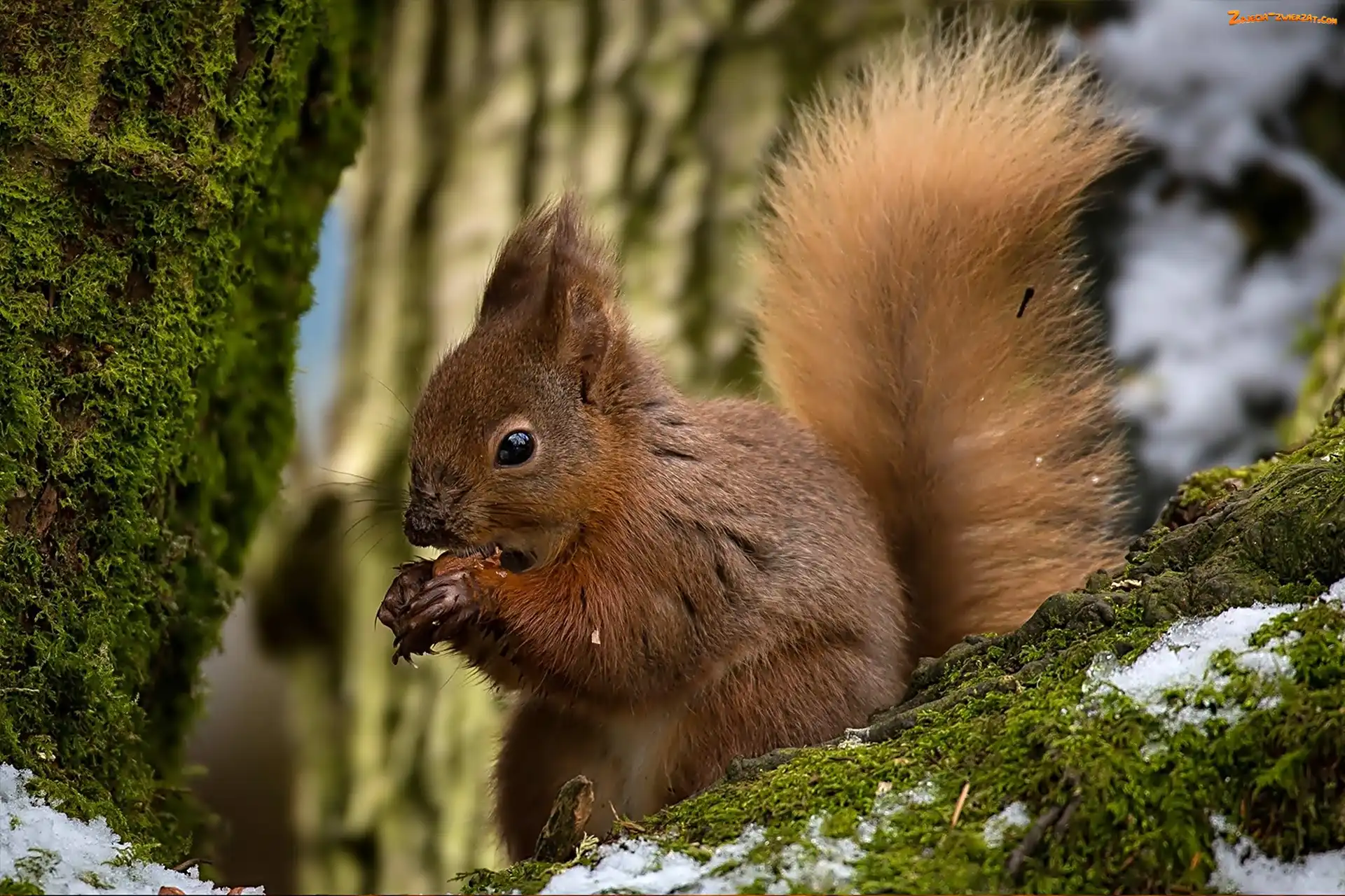Zdjęcie: Omszałe, Drzew, Wiewiórka, Konary