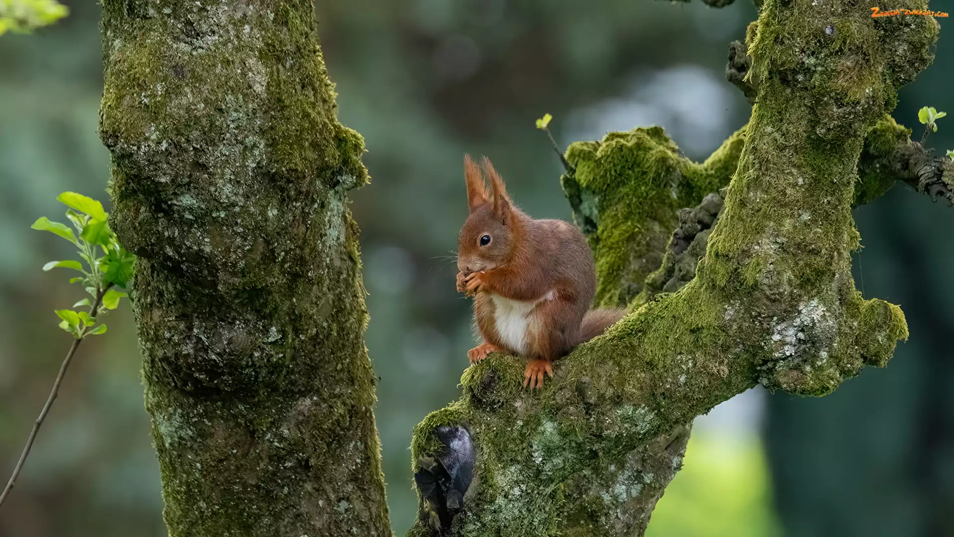 Wiewiórka, Drzewo, Pnie, Omszone