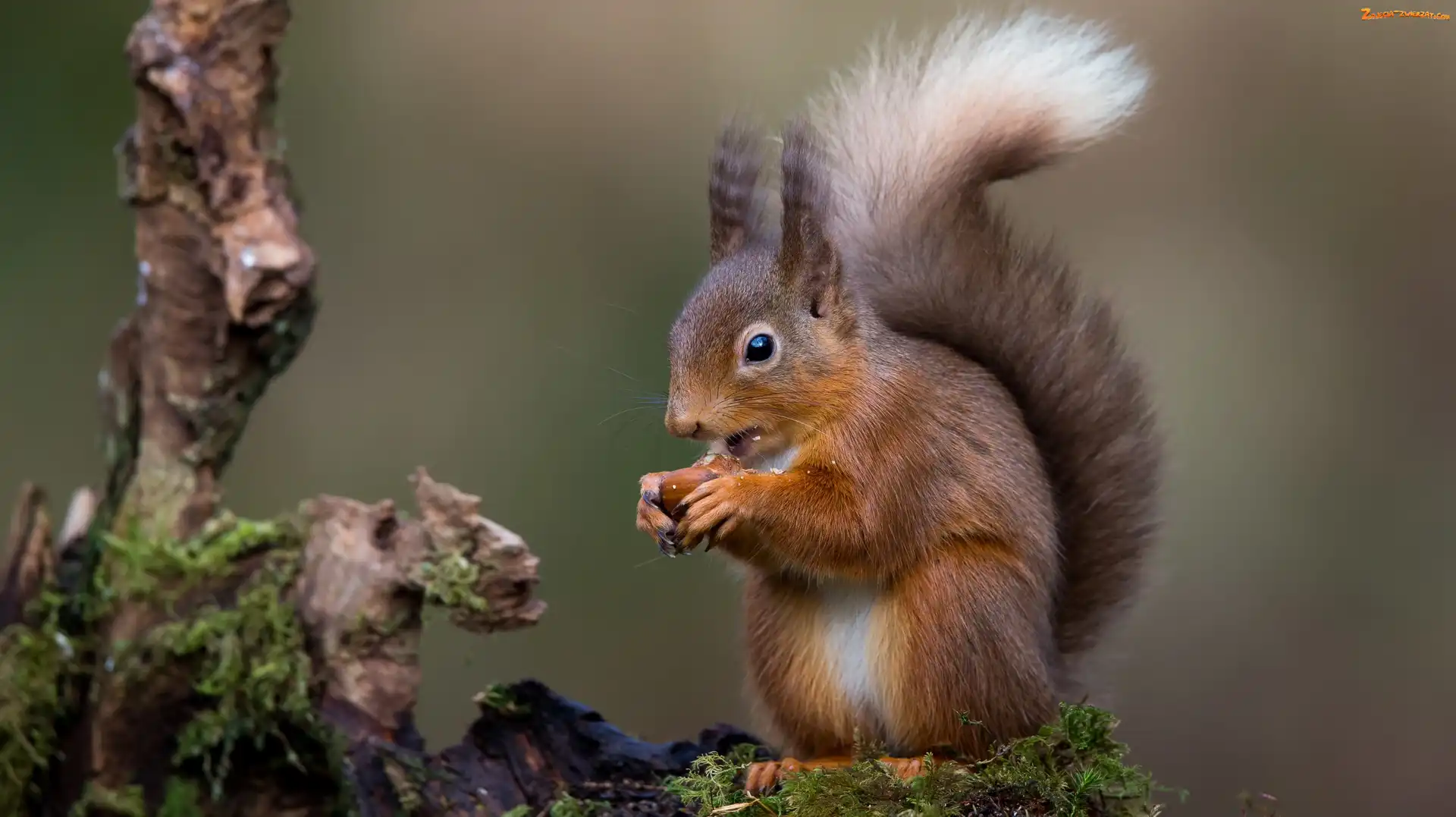 Zdjęcie: Orzech, Mech, Wiewiórka, Gałąź