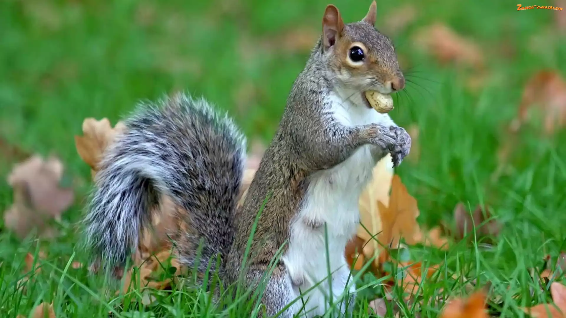 Zdjęcie: Orzeszek, Liście, Wiewiórka, Trawa