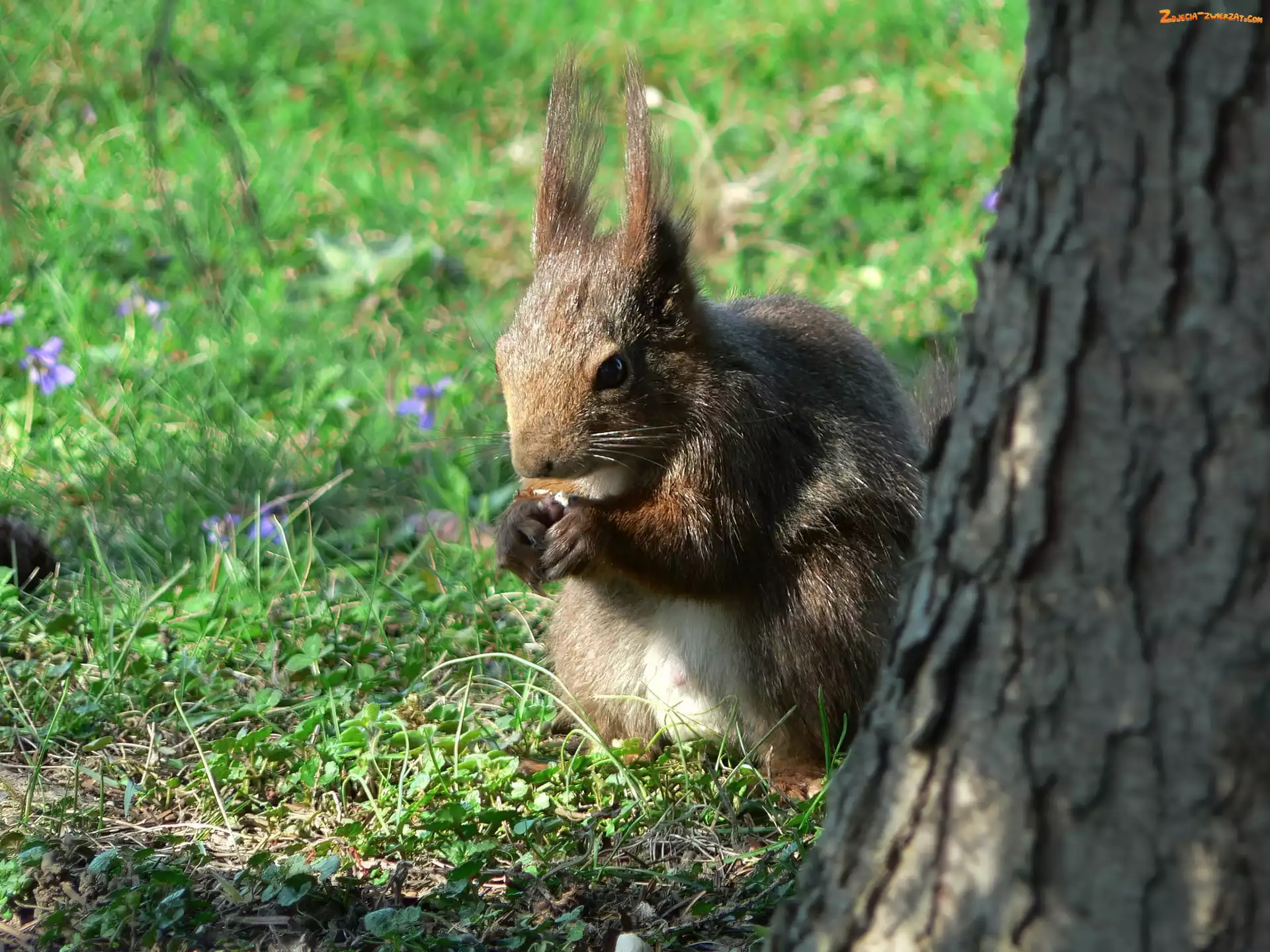 Orzeszek, Trawa, Wiewiórka, Drzewo