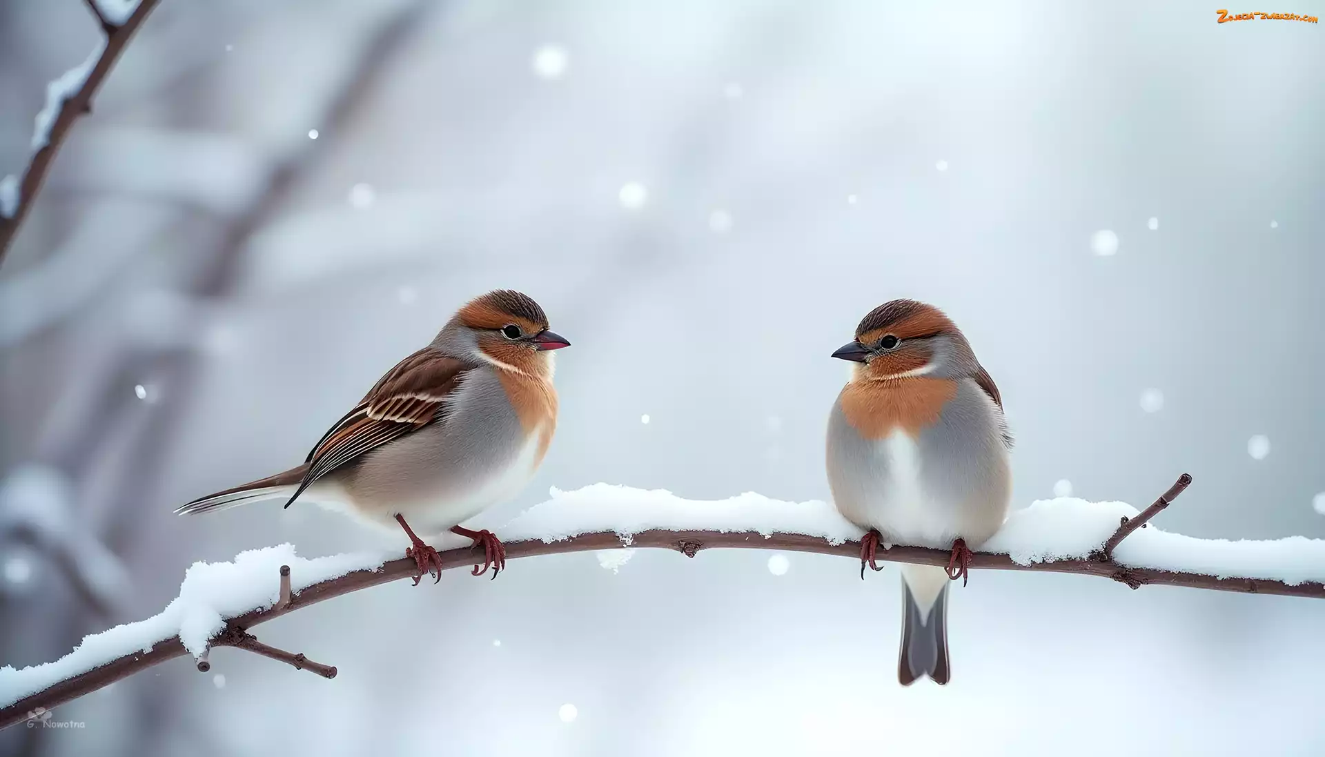 Zdjęcie: Gałązka, Ośnieżona, Grafika, Dwa, Ptaki