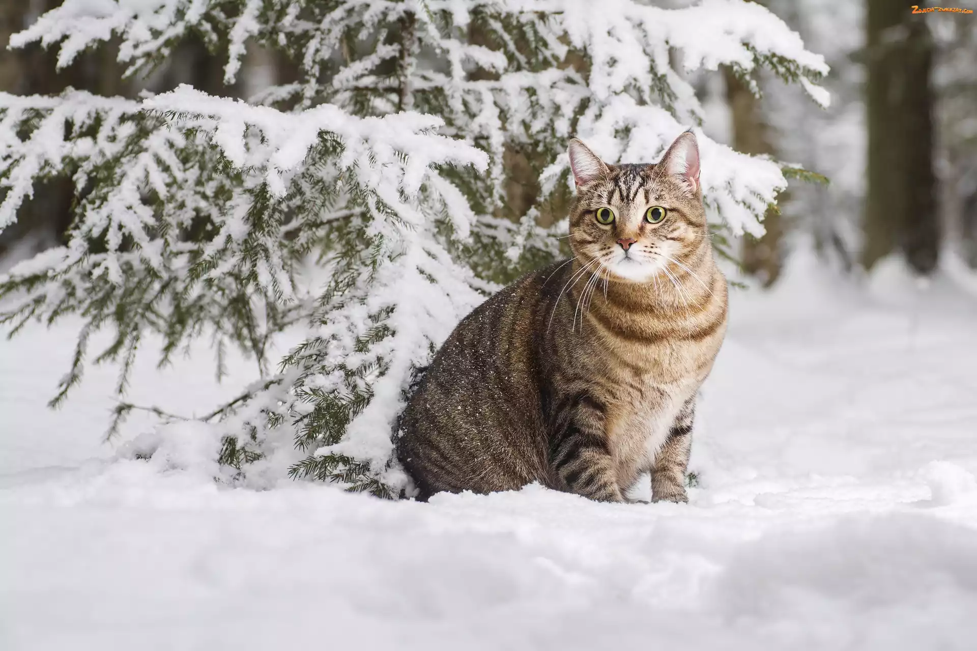 Zdjęcie: Ośnieżone, Zima, Kot, Drzewo