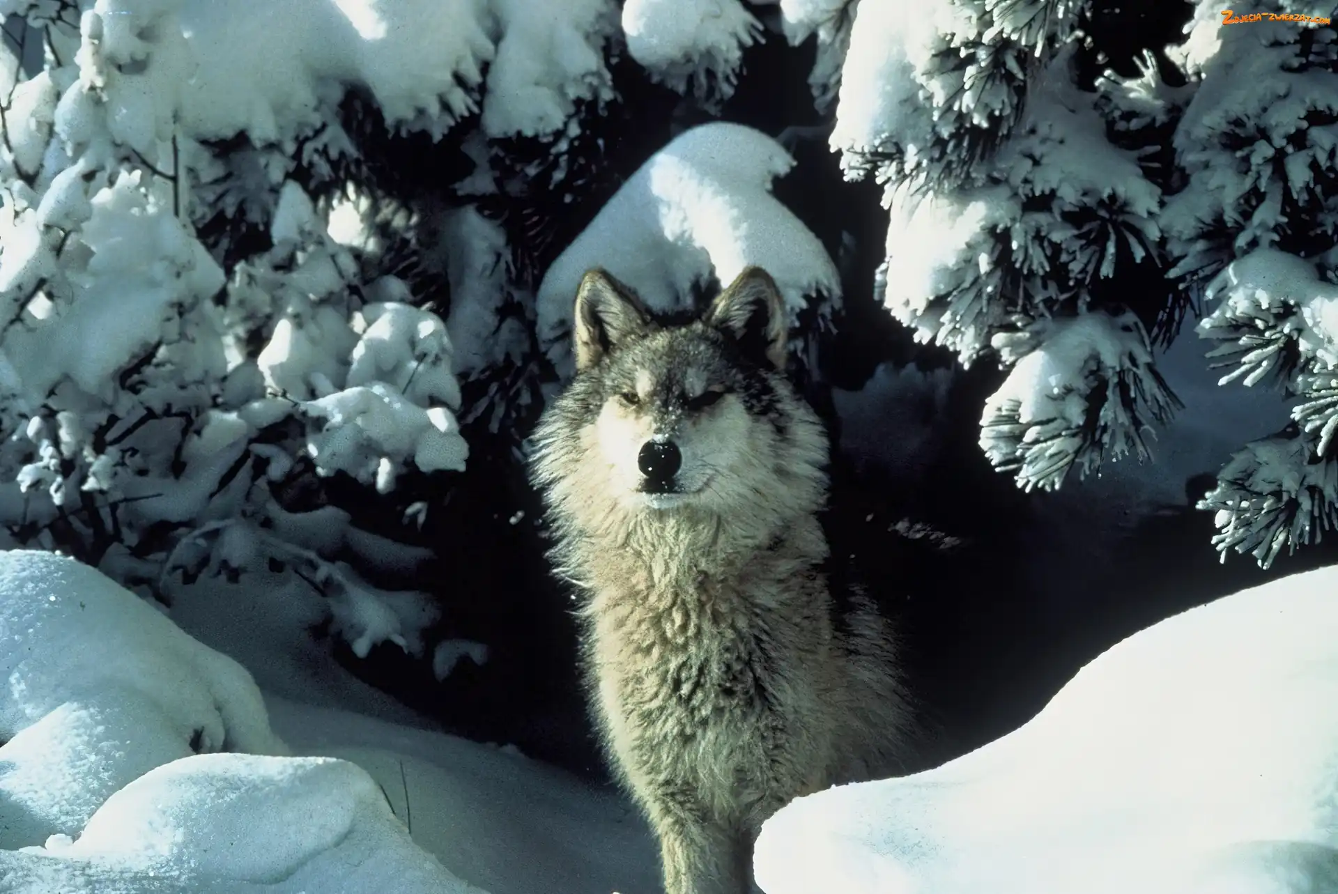 Zdjęcie: Ośnieżone, Zima, Wilk, Gałęzie