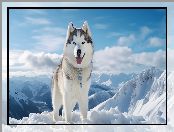 Jęzor, Góry, Zima, Ośnieżone, Pies, Siberian husky