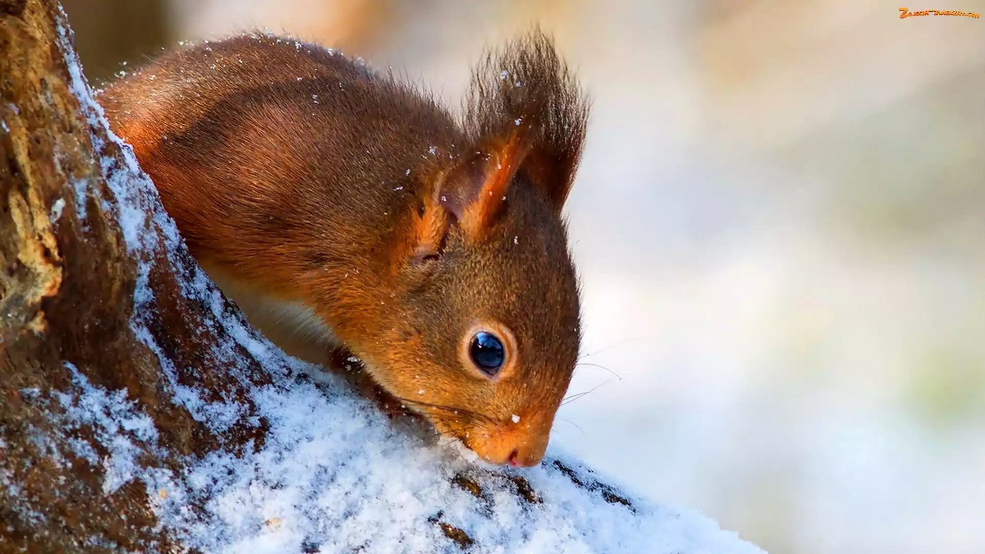 Zdjęcie: Ośnieżony, Drzewa, Wiewiórka, Pień