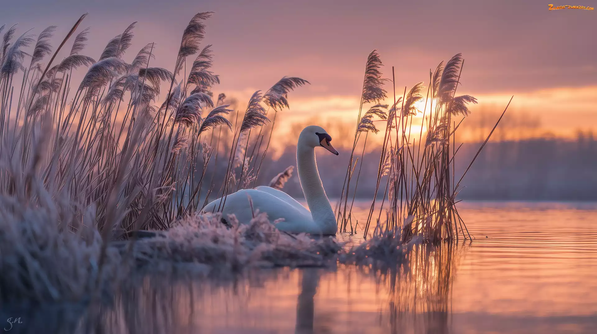 Zdjęcie: Trawy, Zarośla, Łabędź, Oszronione, Jezioro, Grafika AI