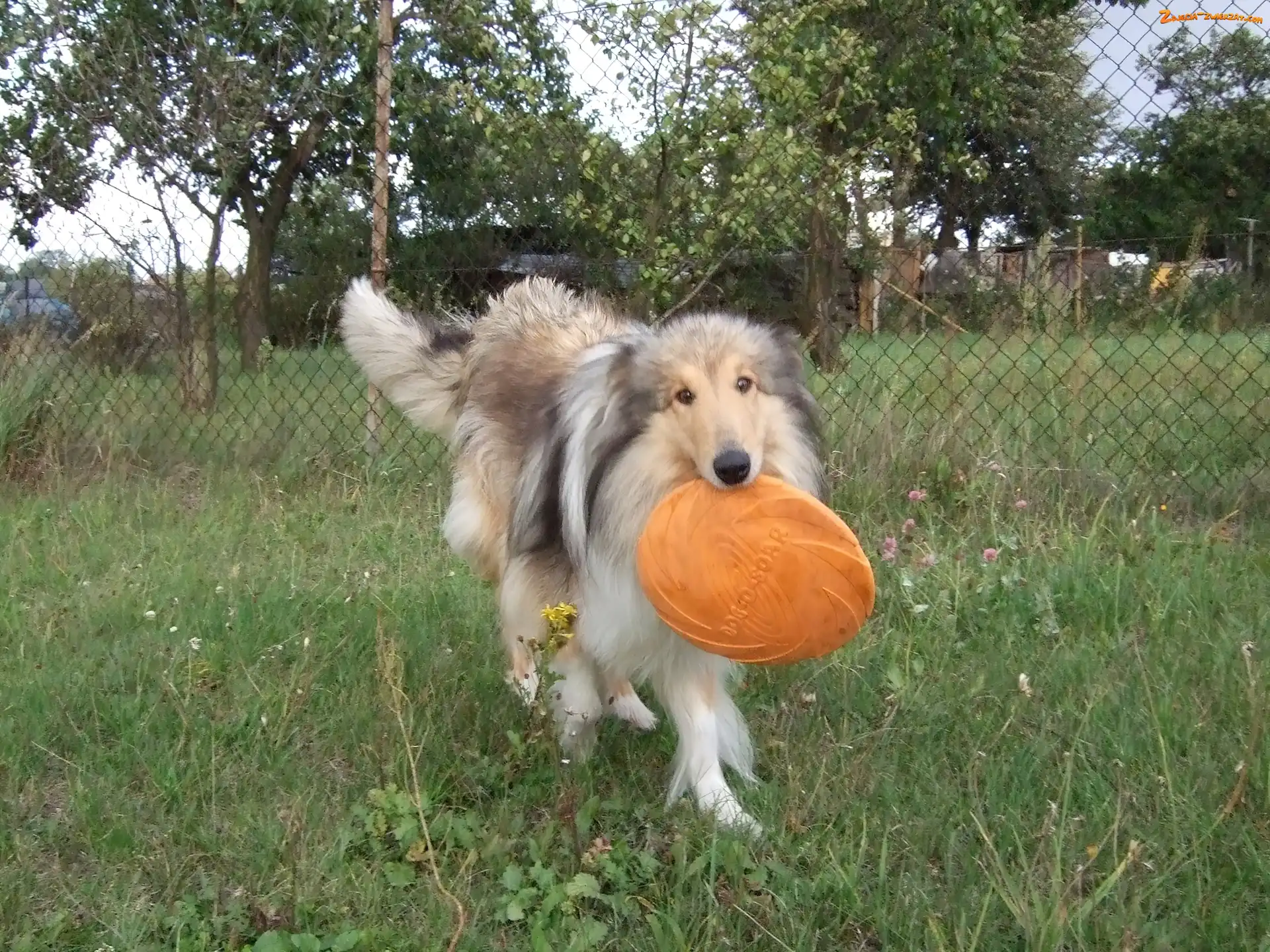 Zdjęcie: Owczarek szkocki długowłosy, frizbee