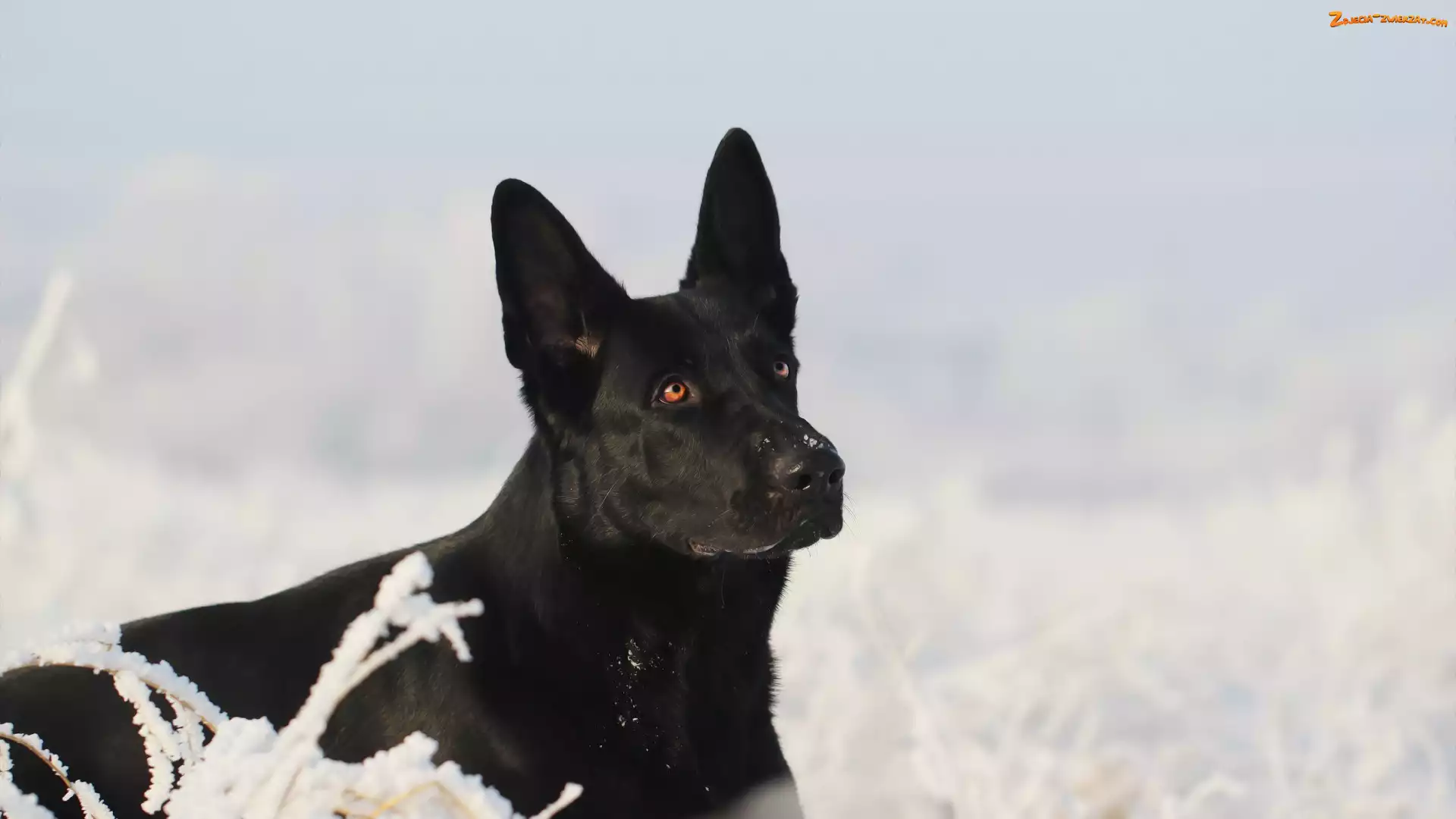 Śnieg, Pies, Czarny owczarek niemiecki