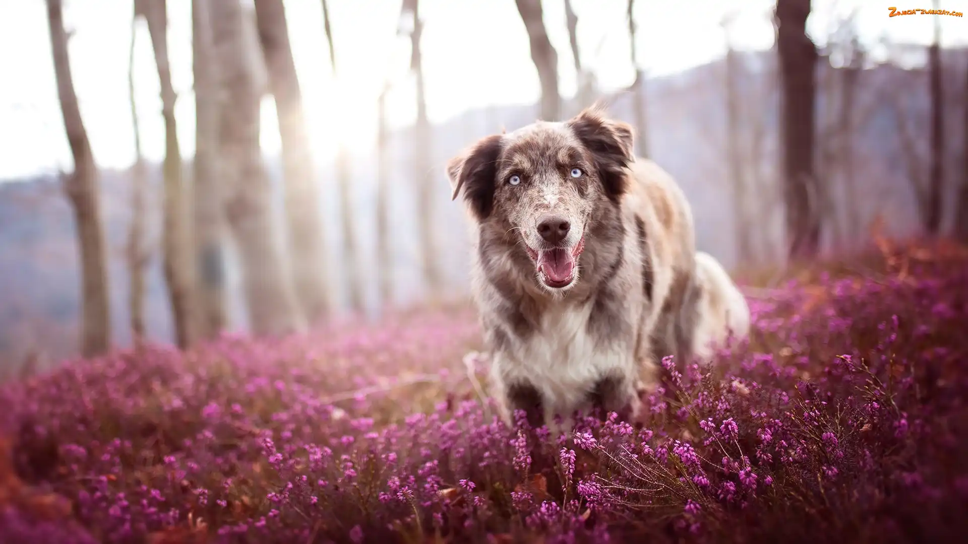 Zdjęcie: Owczarek australijski, Drzewa, Pies, Wrzos