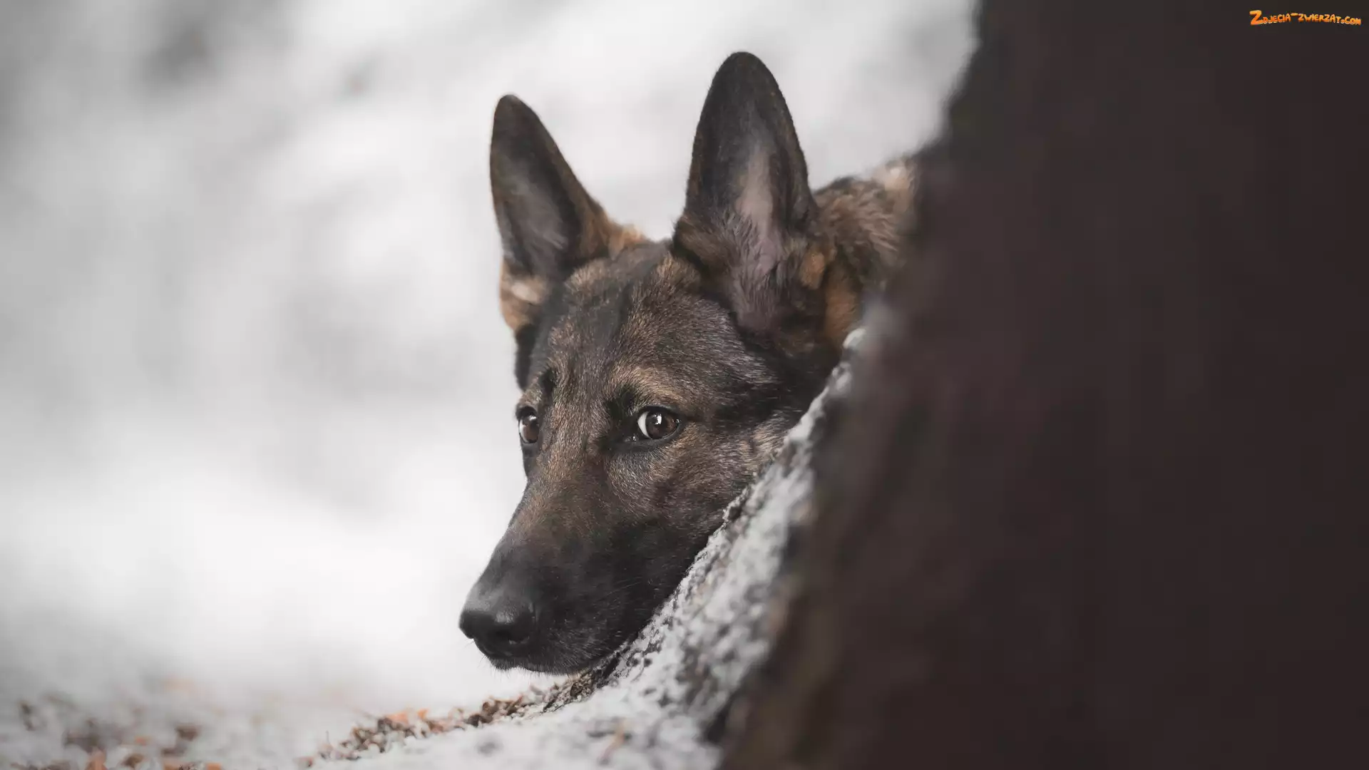 Zdjęcie: Owczarek niemiecki, Drzewo, Pies, Mordka