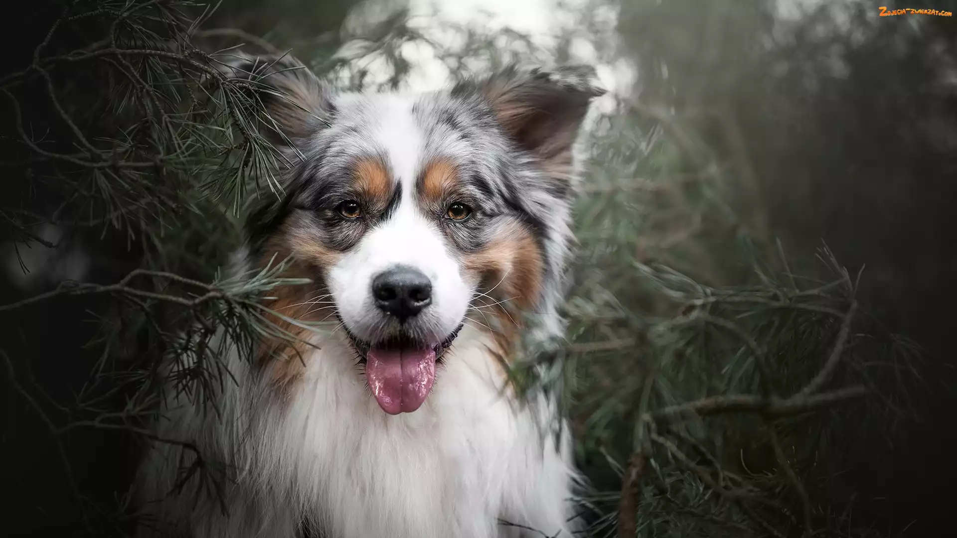 Zdjęcie: Owczarek australijski, Gałązki, Pies, Mordka