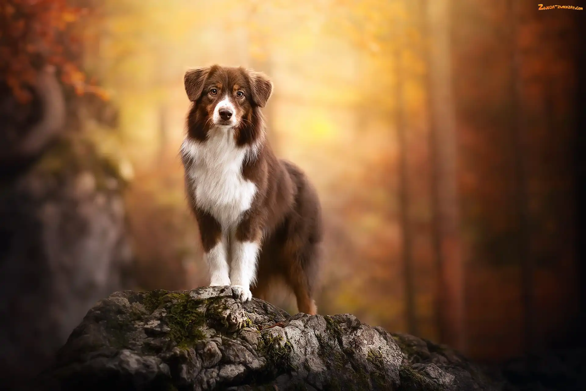 Zdjęcie: Owczarek australijski, Kamień, Pies, Las