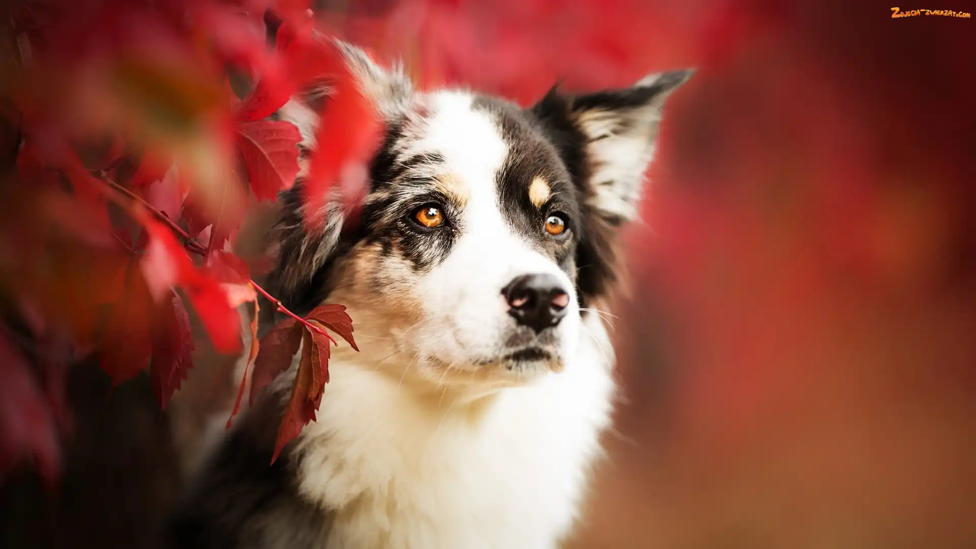 Zdjęcie: Owczarek australijski, Liście, Opis: Pies, Mordka