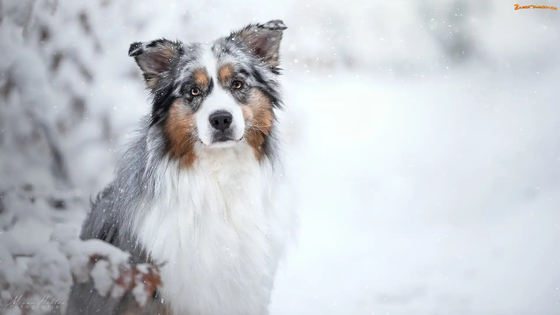 Zdjęcie: Śnieg, Pies, Owczarek australijski