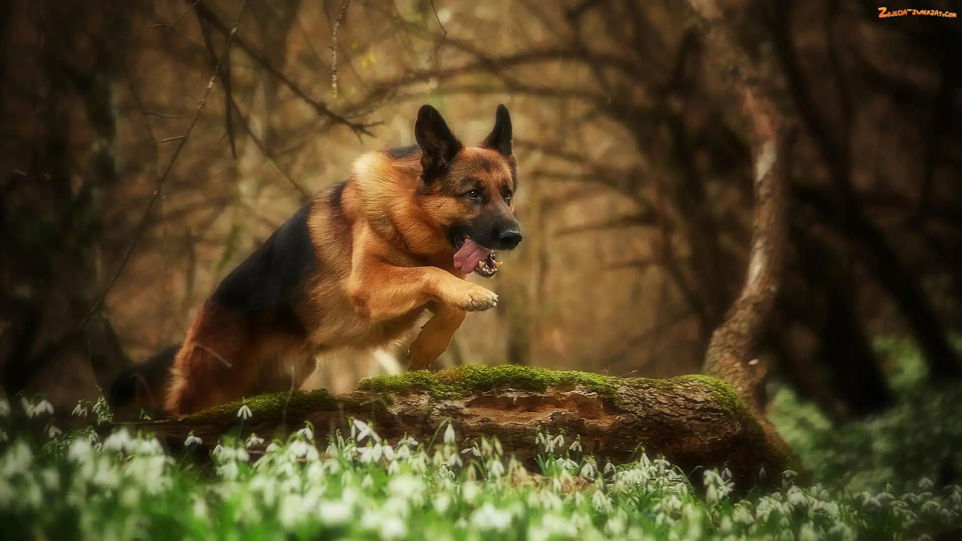 Zdjęcie: Owczarek niemiecki, Skok, Pies, Konar