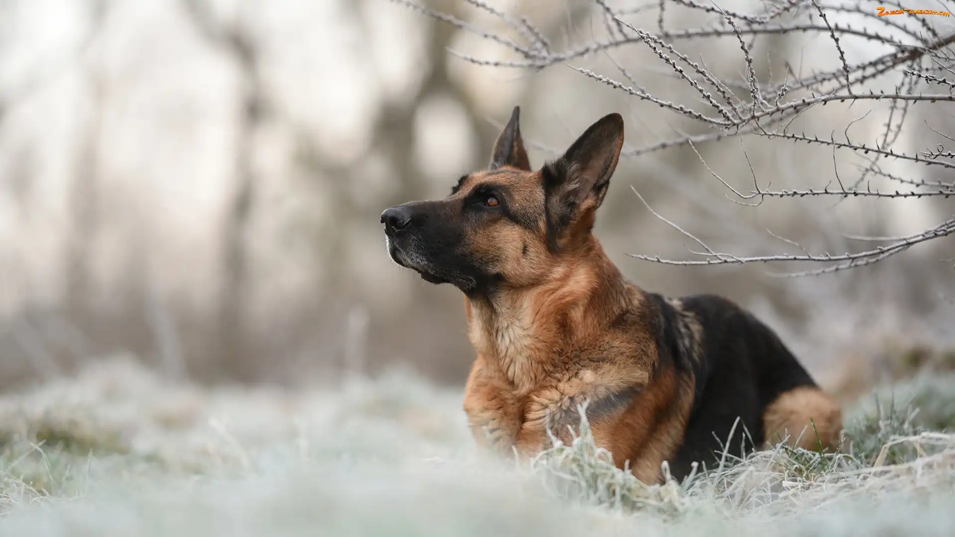 Zdjęcie: Owczarek niemiecki, Trawa, Pies, Gałązki