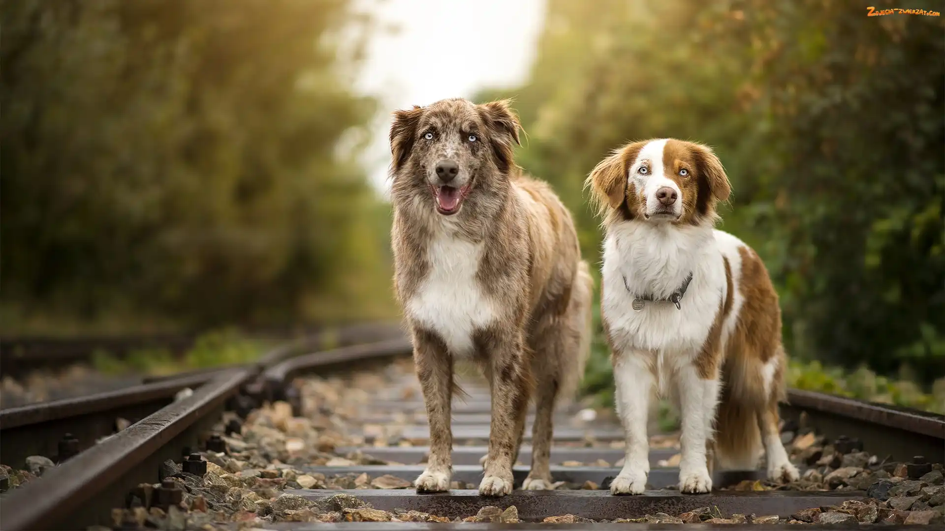 Zdjęcie: Owczarek australijski, Kolejowe, Psy, Tory