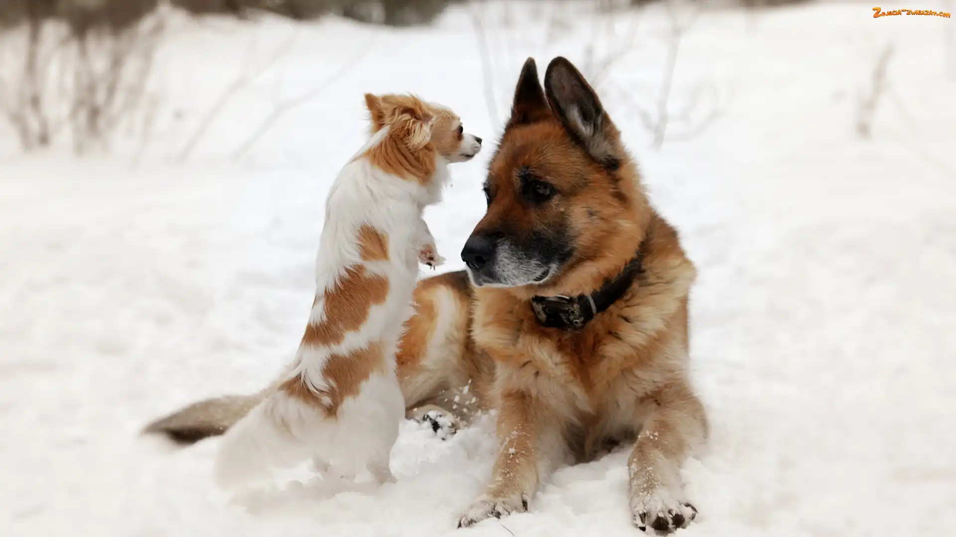 Zdjęcie: Chihuahua, Śnieg, Owczarek, Psy, Niemiecki