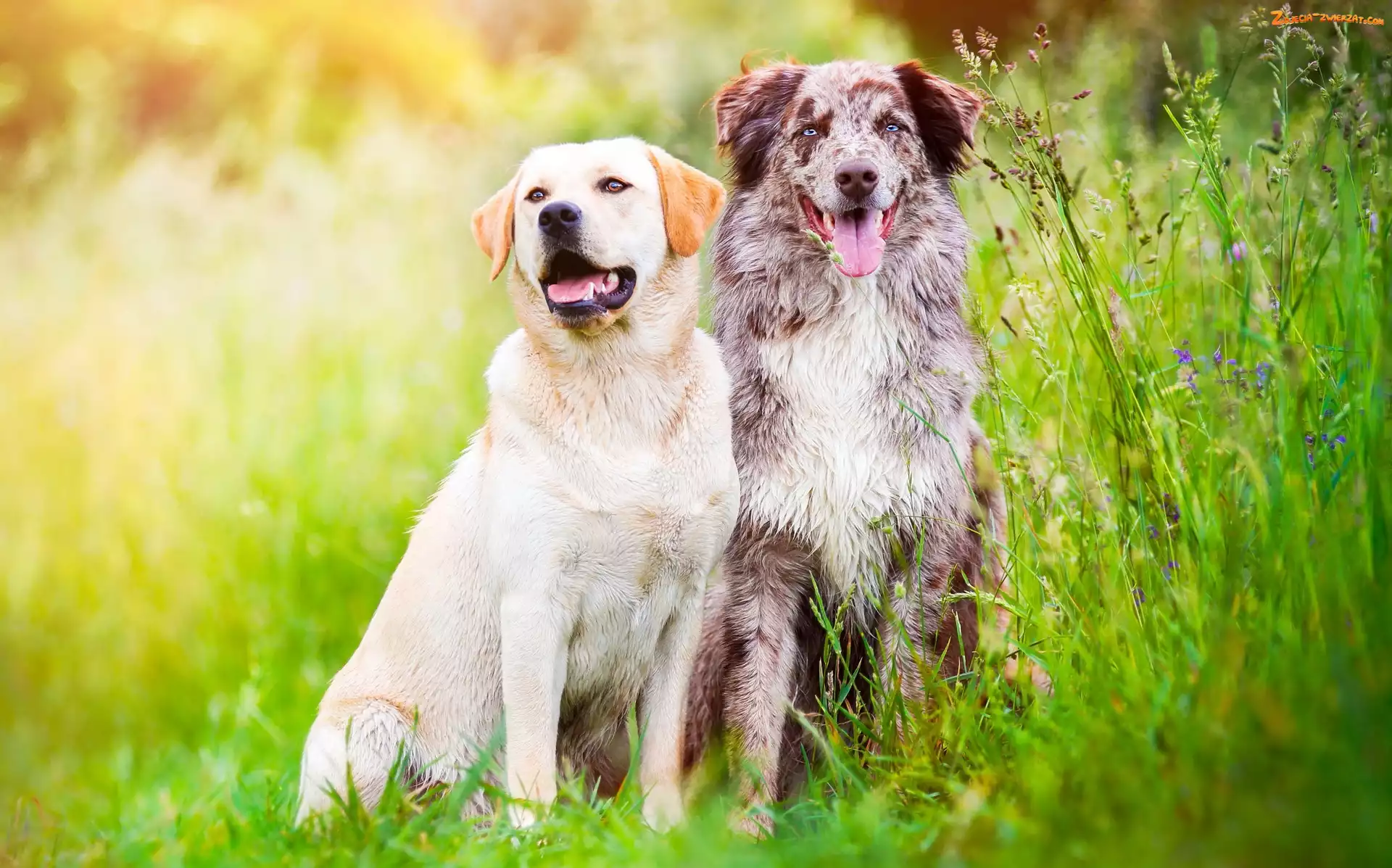 Zdjęcie: Owczarek australijski, Trawa, Labrador retriever, Łąka