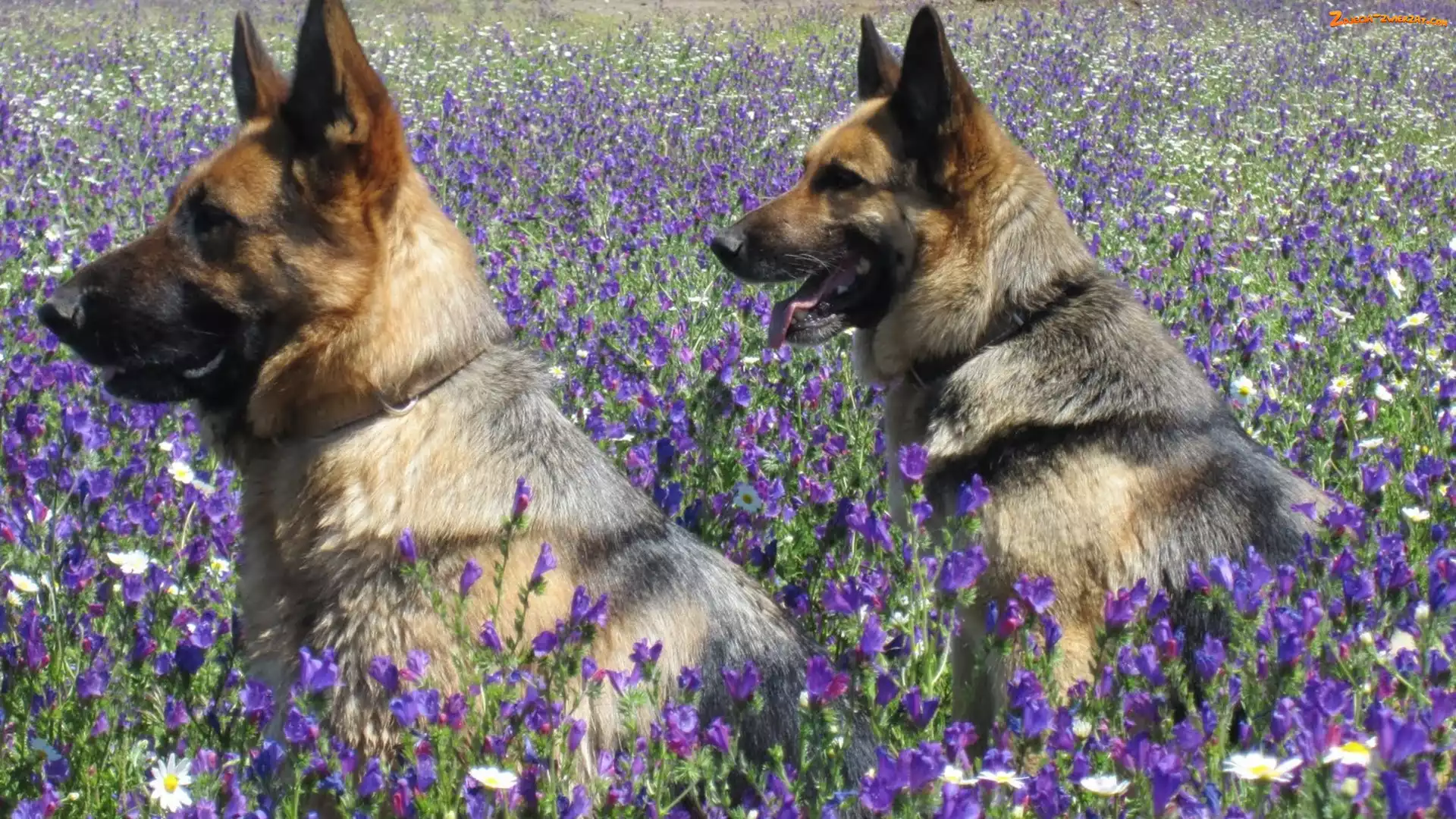 Zdjęcie: Łąka, Dwa, Owczarki Niemieckie