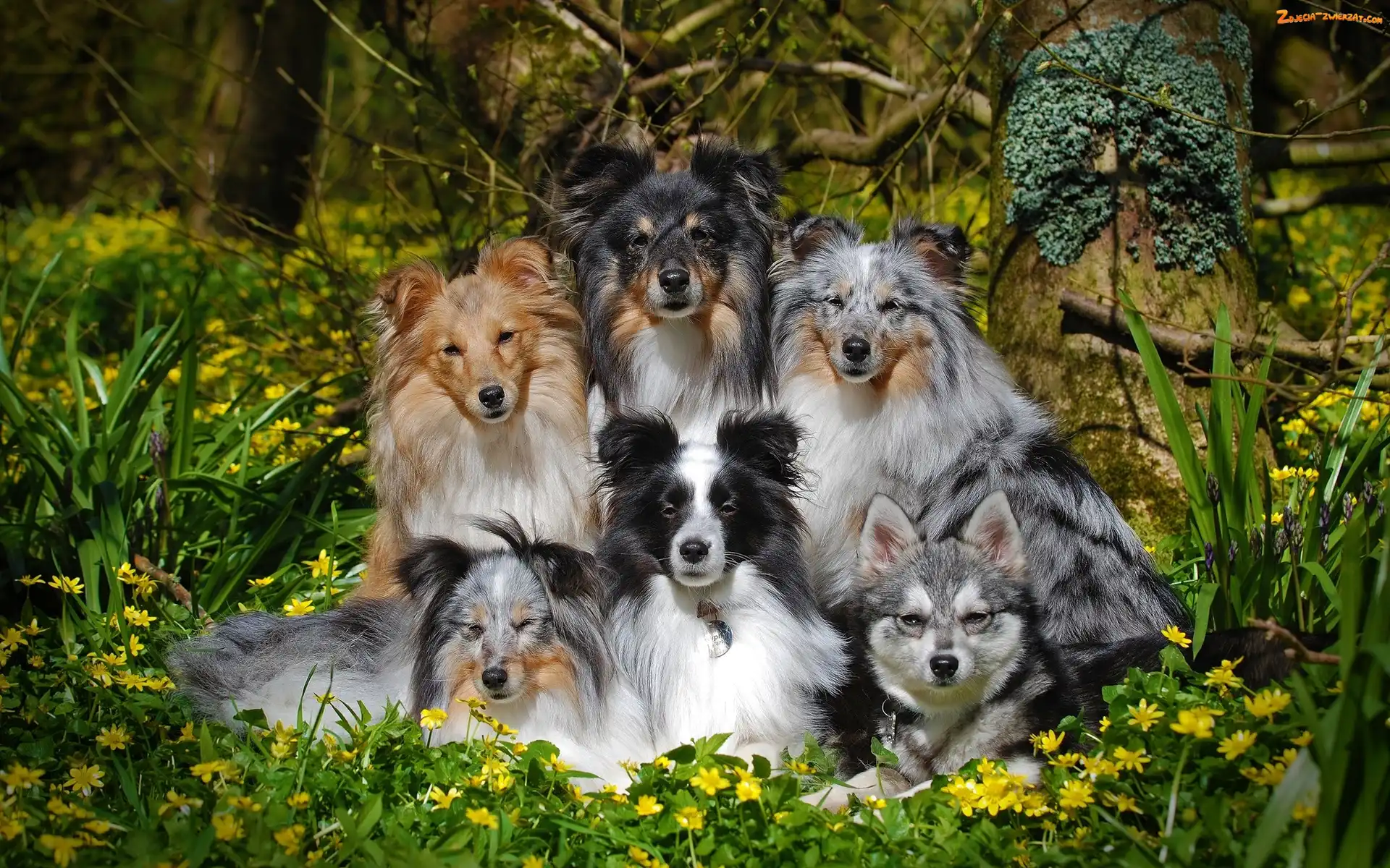 Zdjęcie: Kwiaty, Owczarki szetlandzkie, Psów, Sześć, Kundelek