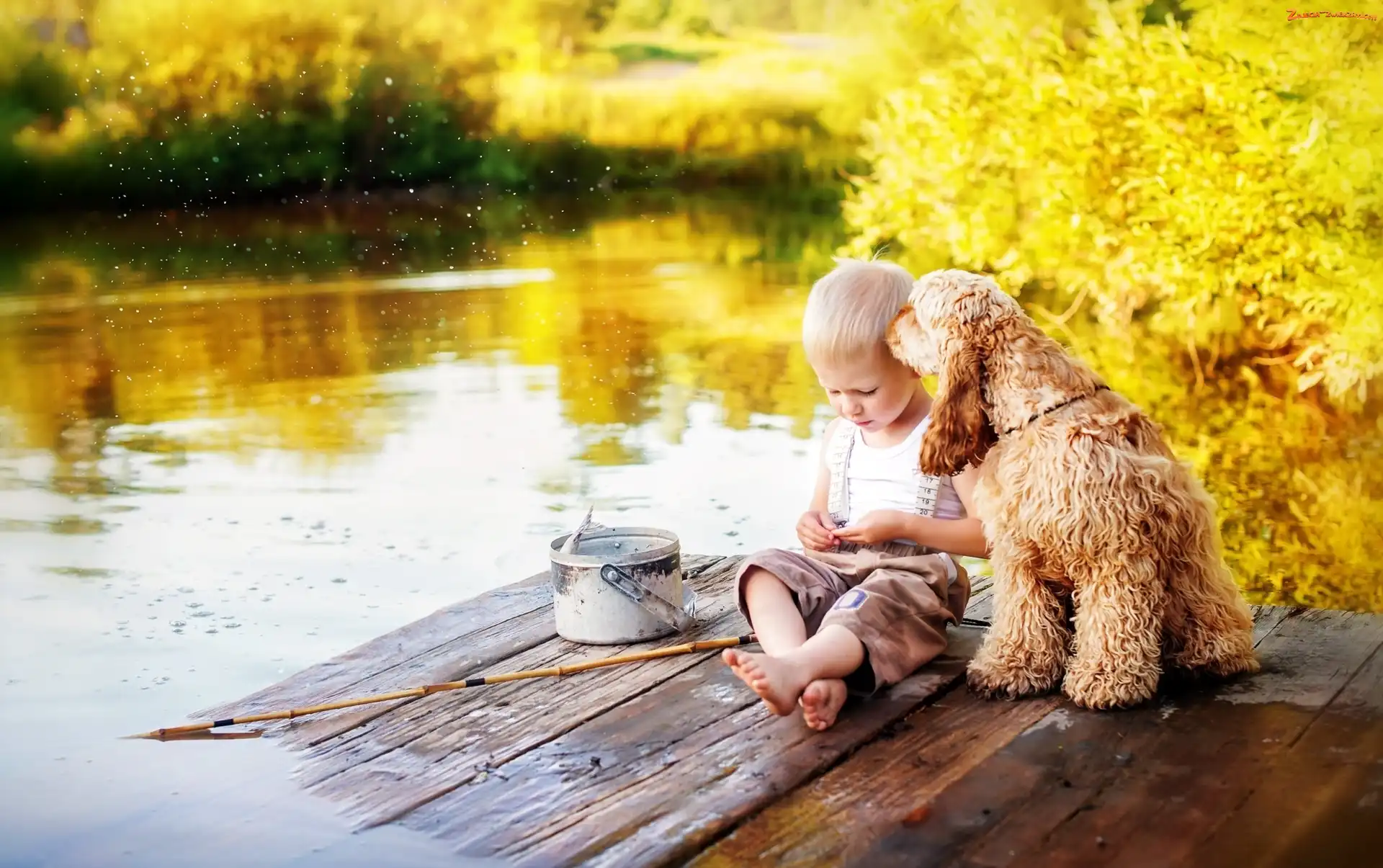 Zdjęcie: Łowienie, Chłopiec, Drzewa, Wędka Rzeka, Pies, Ryb