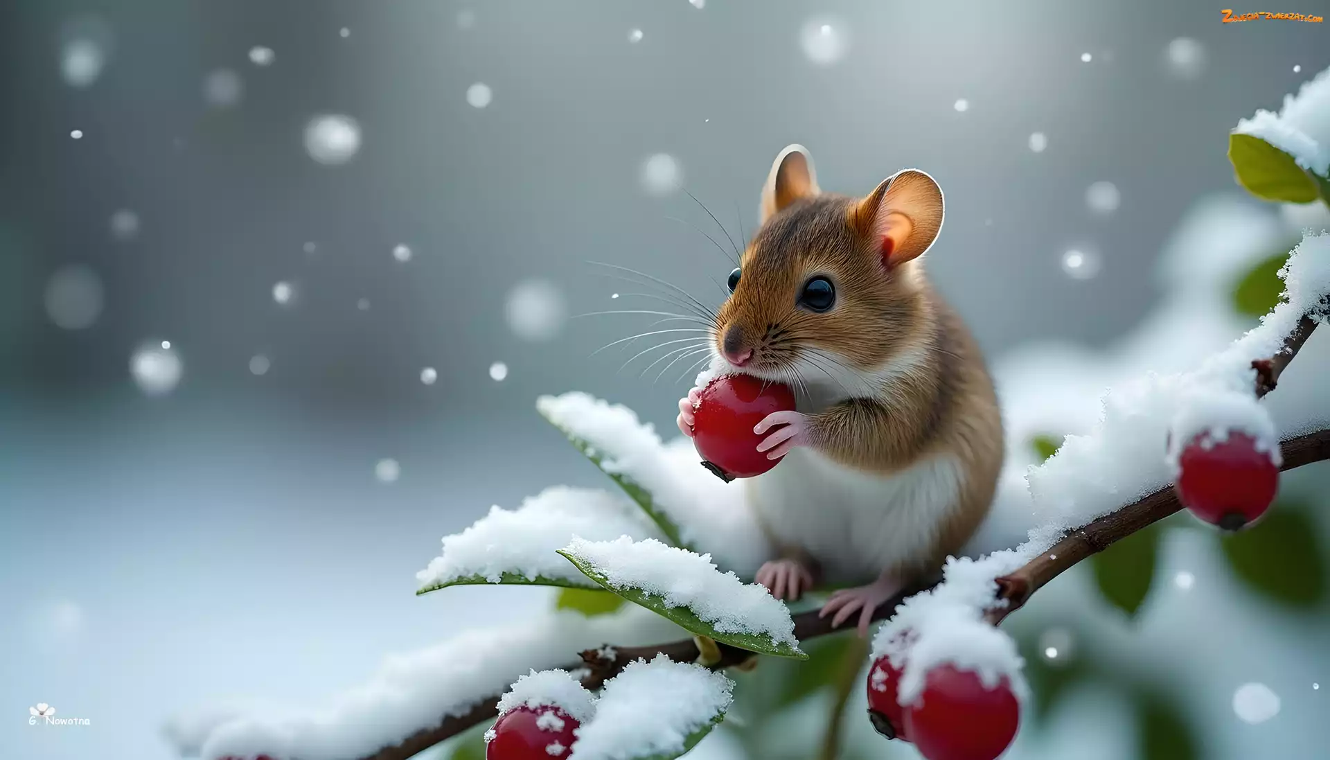Zdjęcie: Śnieg, Owoce, Grafika, Mysz, Gałązka