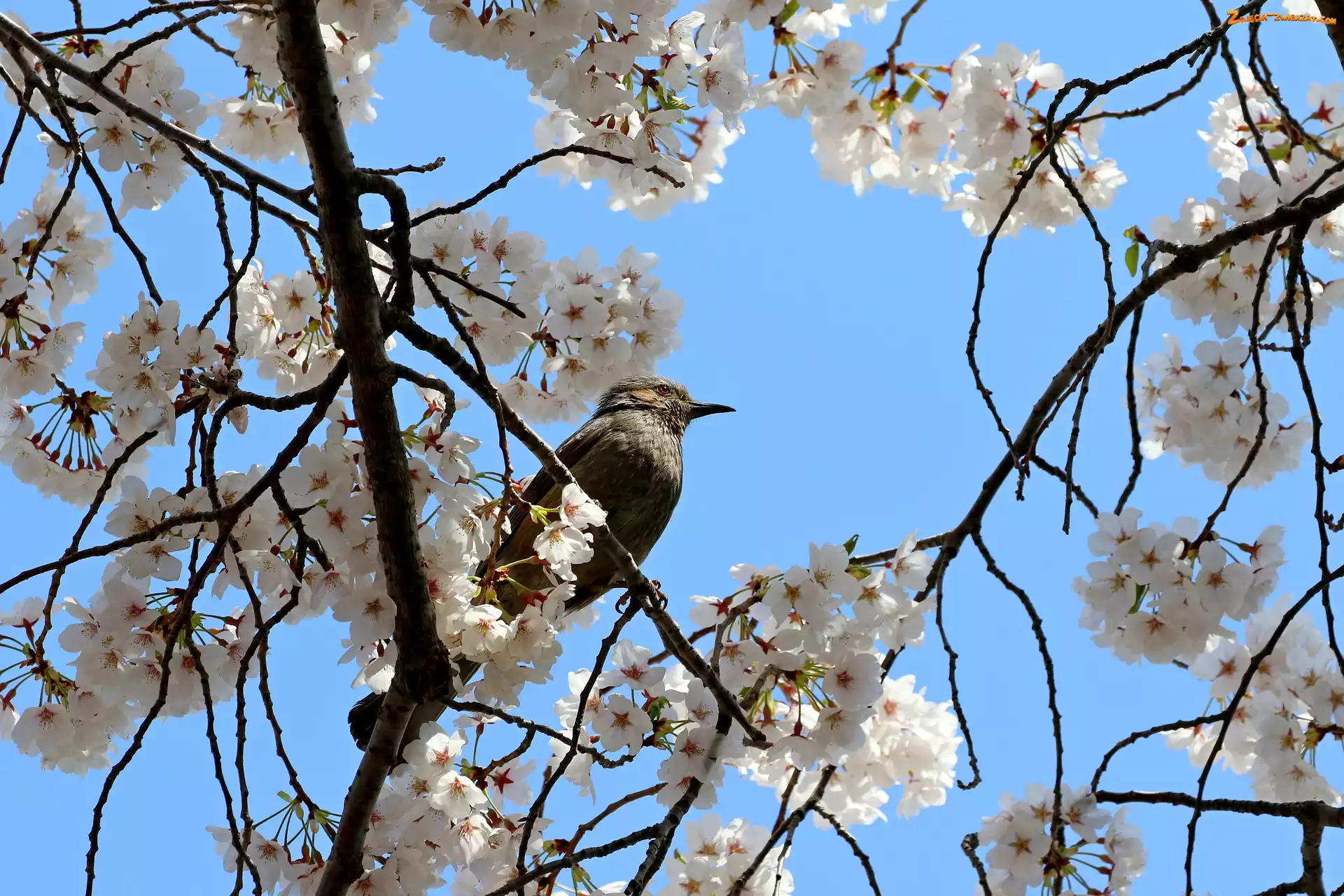 Zdjęcie: Wiśnia, Białe, Ptak, Szczeciak rudouchy, Kwiaty, Drzewo owocowe