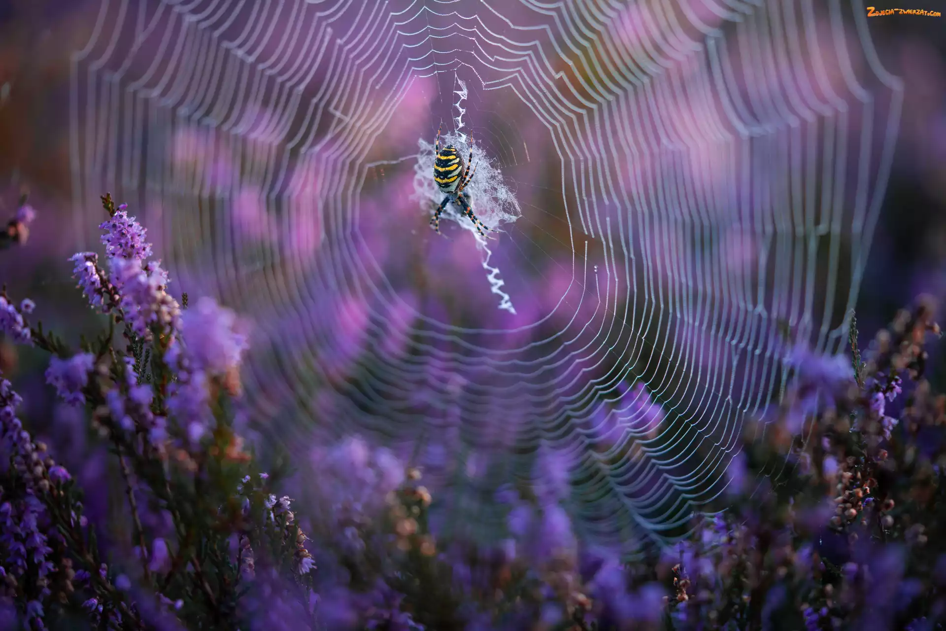 Zdjęcie: Rośliny, Wrzosy, Pająk, Pajęczyna