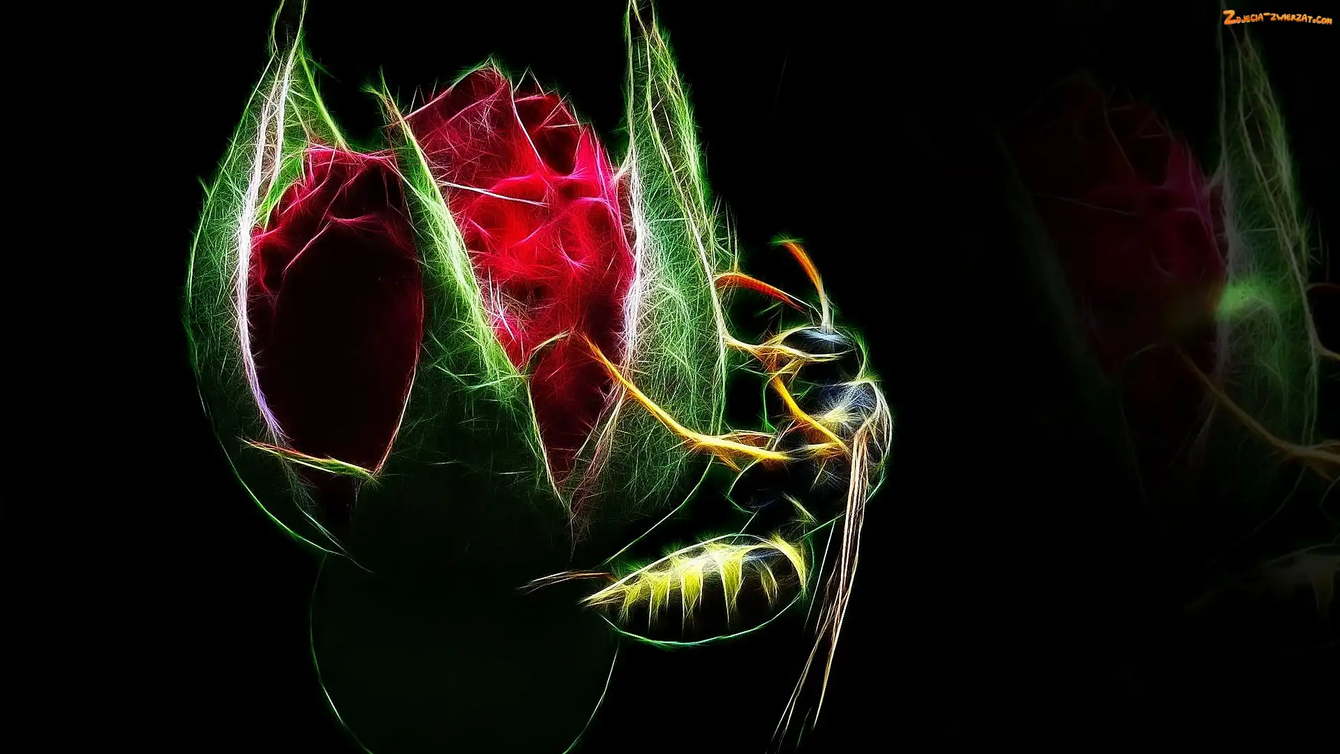 Fractalius, Pąk, Kwiat, Tło, Czarne, Róża, Czerwona, Pszczoła