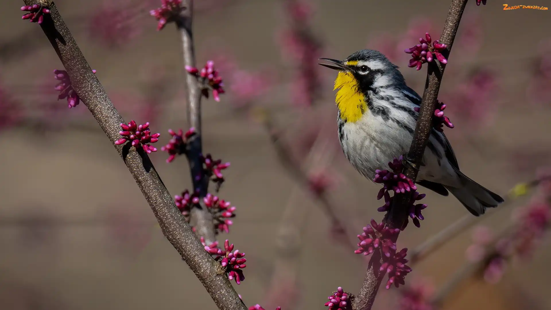 Zdjęcie: Pąki, Bordowe, Lasówka szarogrzbieta, Ptak, Gałązki