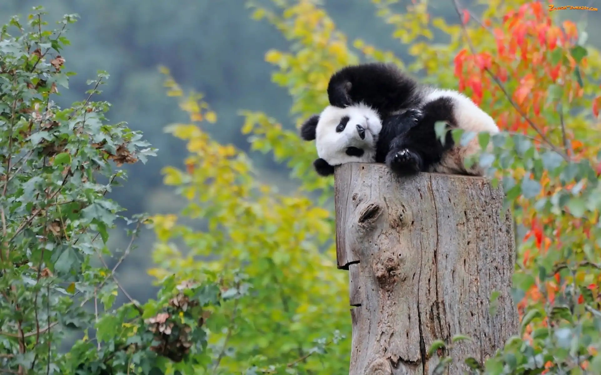 Las, Panda, Mały, Drzewa, Odpoczynek, Niedźwiadek, Pień