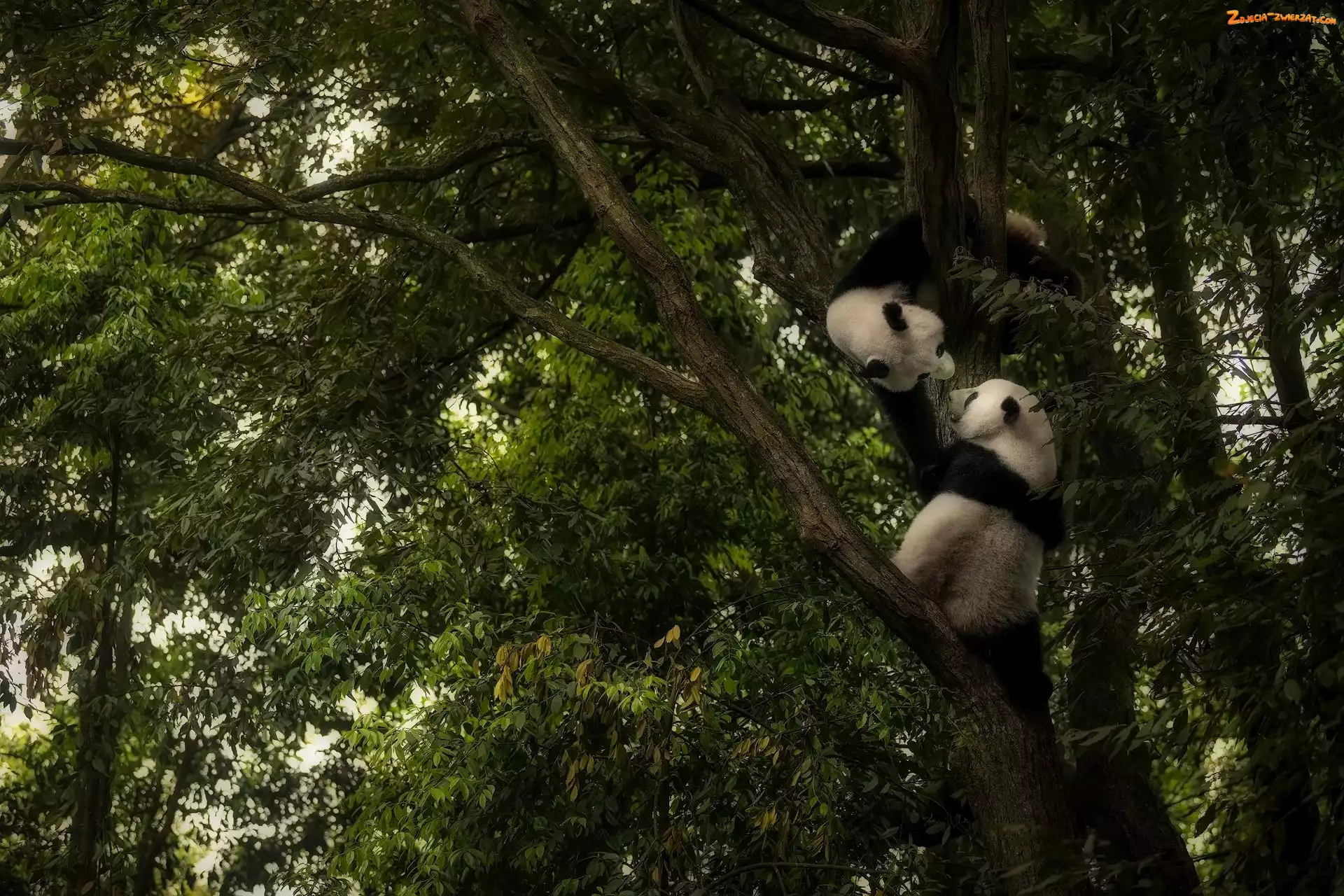 Zdjęcie: Pandy, Liście, Niedźwiadki, Drzewo