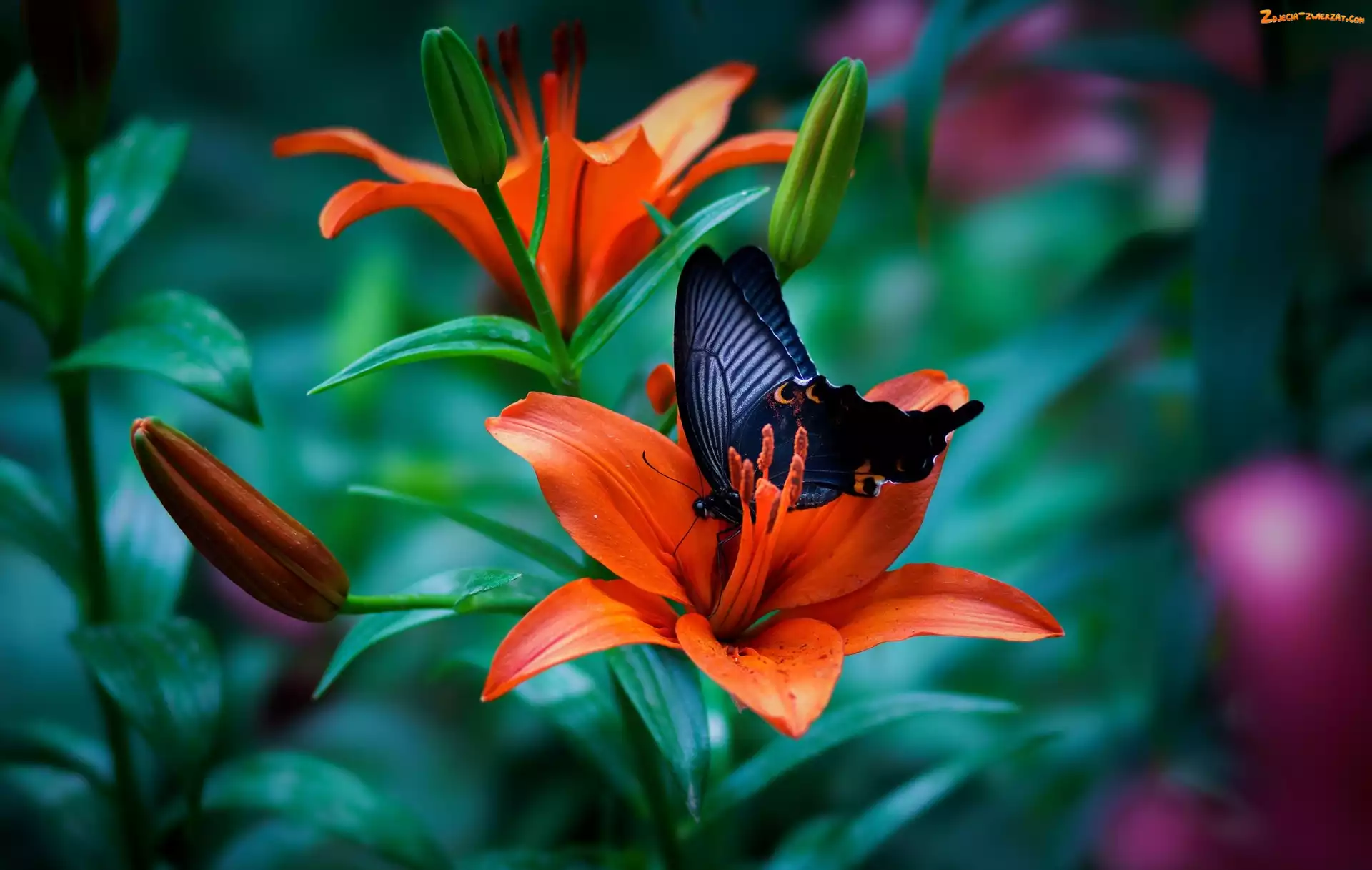 Zdjęcie: Papilio okinawensis, Motyl, Kwiaty, Lilie, Czarny