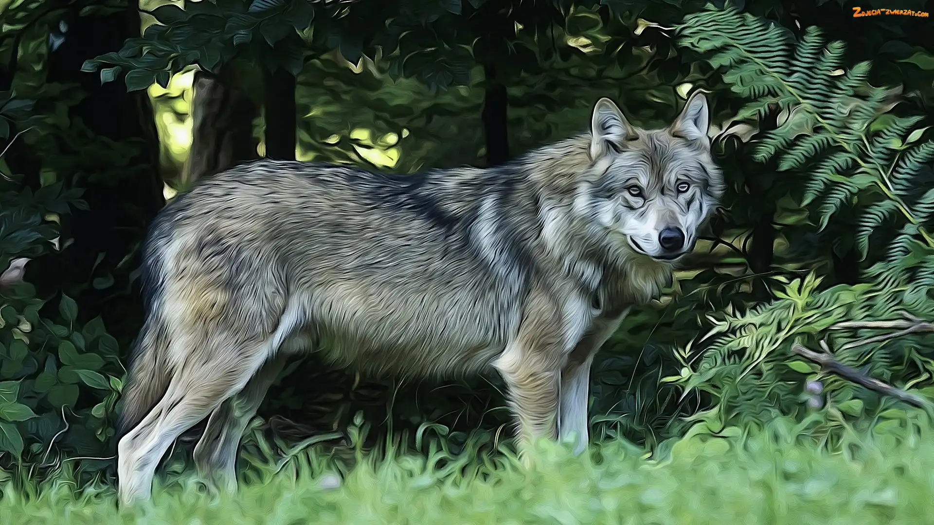 Zdjęcie: Paproć, Grafika, Wilk, Drzewa