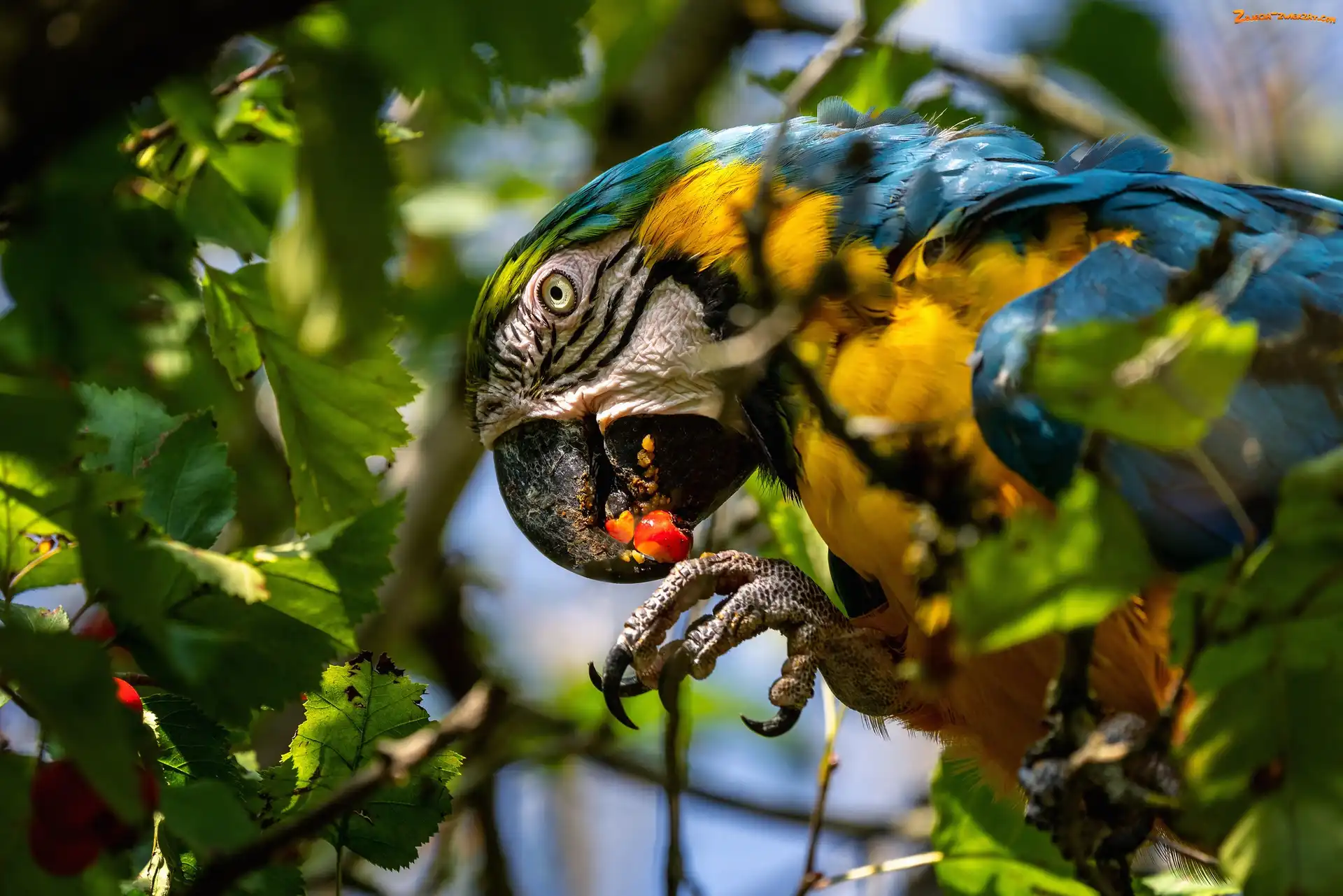 Zdjęcie: Papuga, Liście, Ptak, Ara zwyczajna