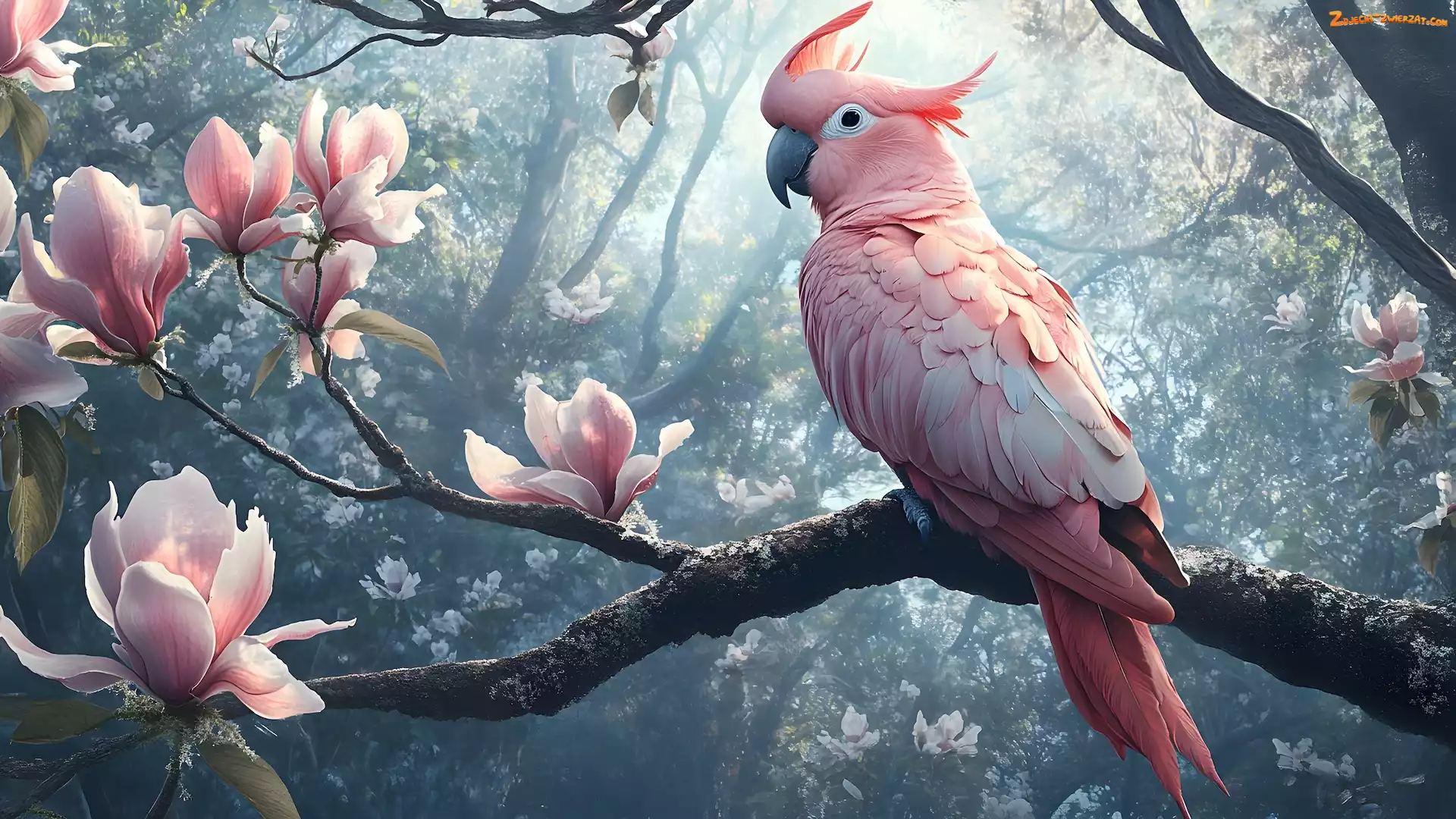 Kwiaty, Kakadu, Ptak, Papuga, Drzewo, Magnolia