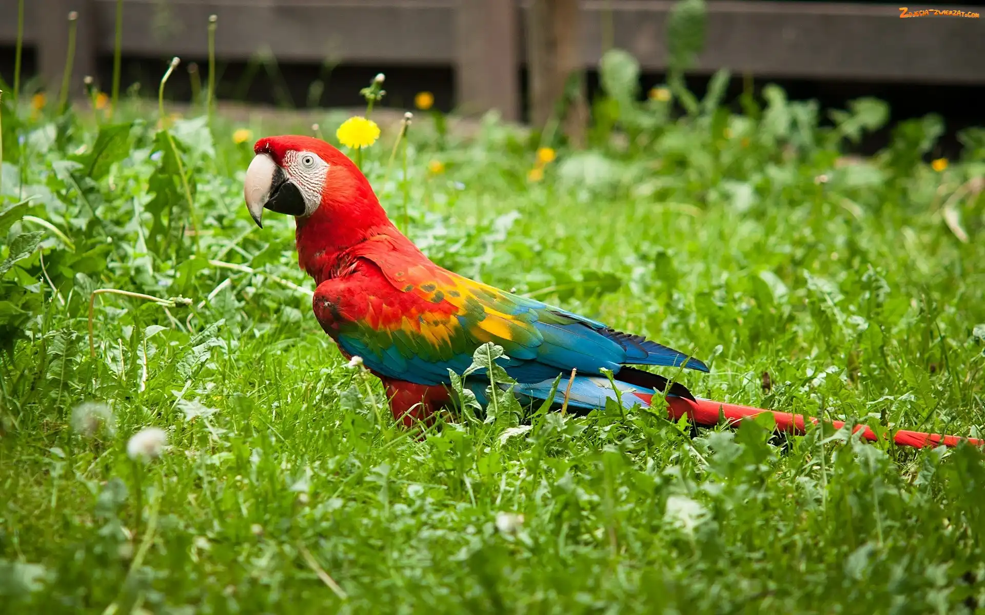 Zdjęcie: Trawa, Papuga, Ara