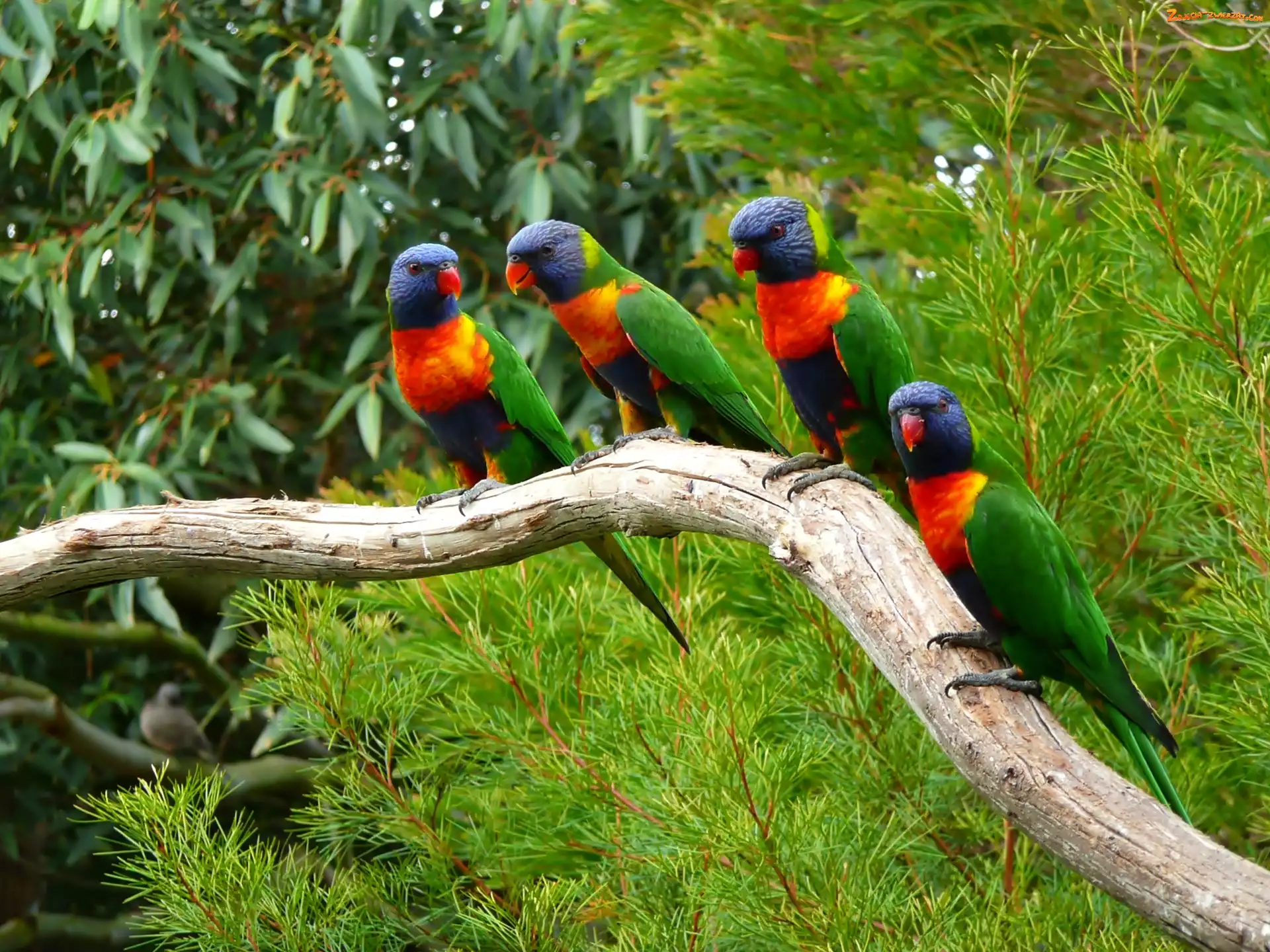 Zdjęcie: Papugi, Konar, Cztery, Drzewa